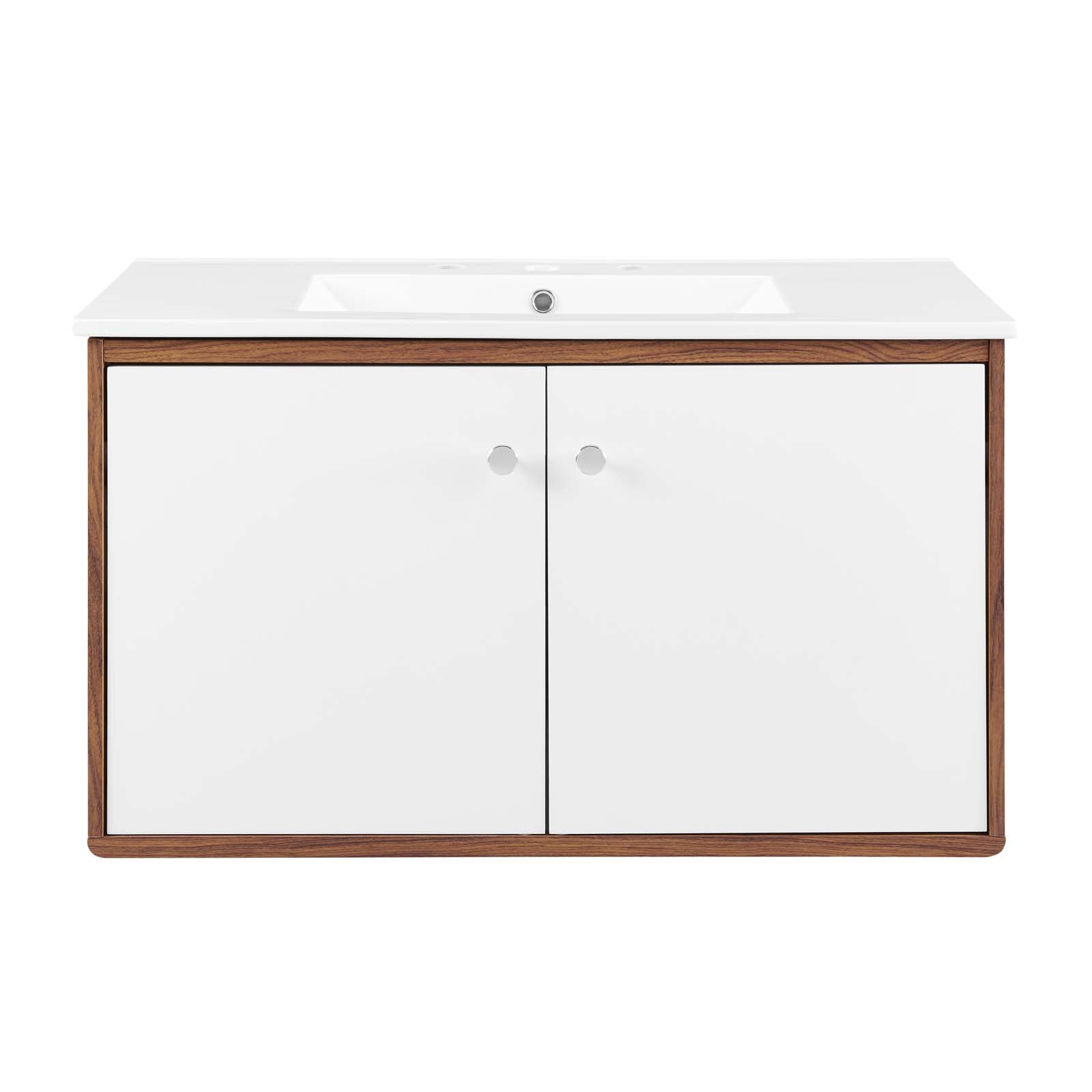 Transmit 36" Wall-Mount Bathroom Vanity Walnut White EEI-4434-WAL-WHI