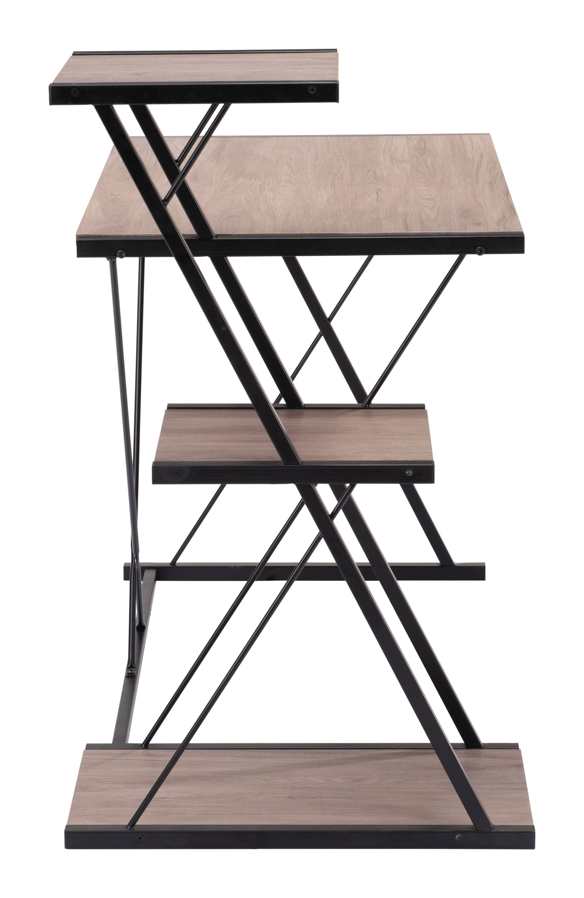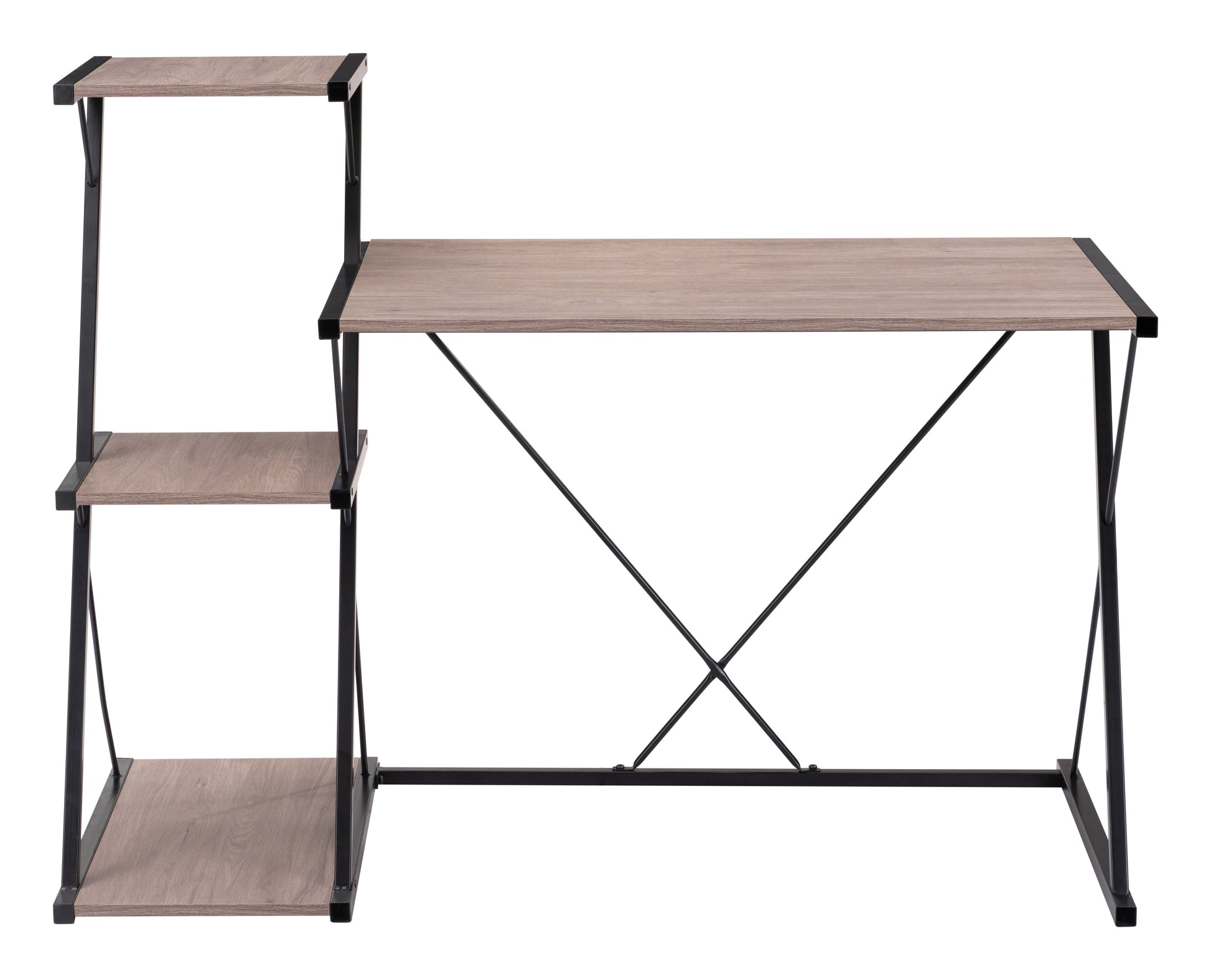 The Tunisia Desk has powder coated steel frame with a laminated MDF top and shelves. This minimal urban desk looks great in any modern workspace.