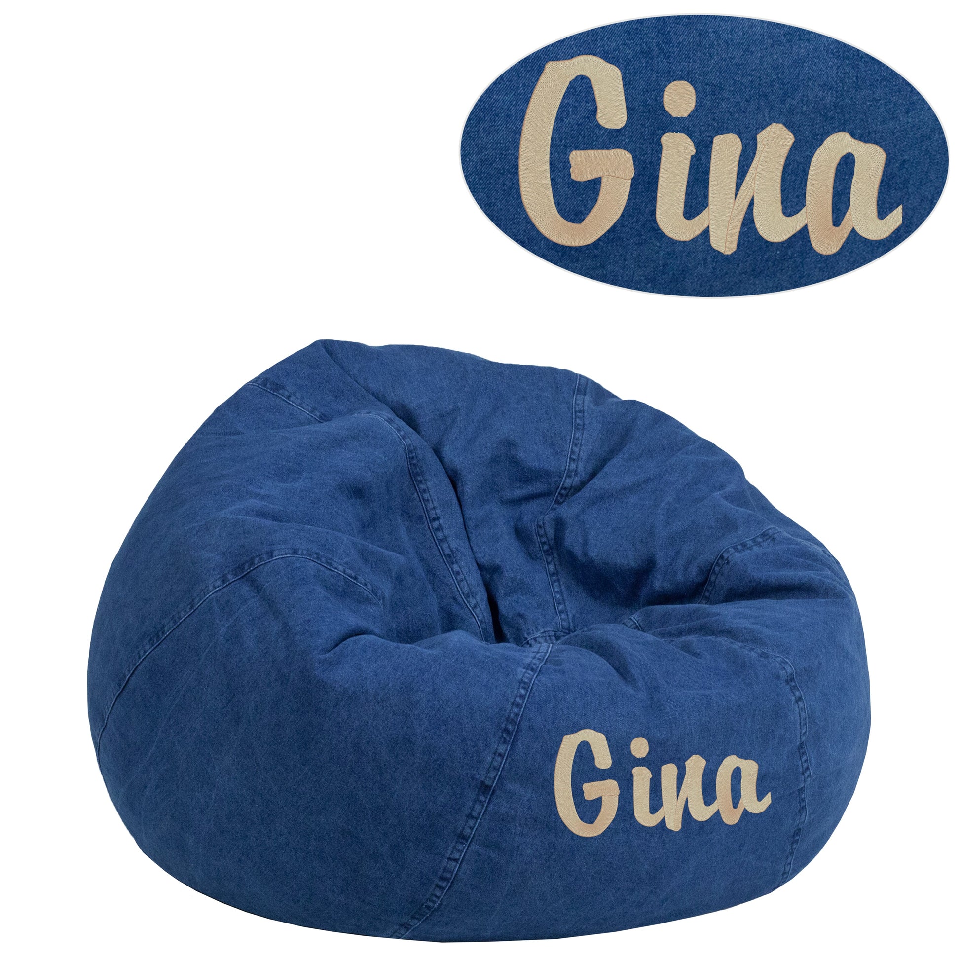 Dillon Personalized Small Denim Bean Bag Chair for Kids and Teens Dimensions: 30"W x 30"D x 18"H