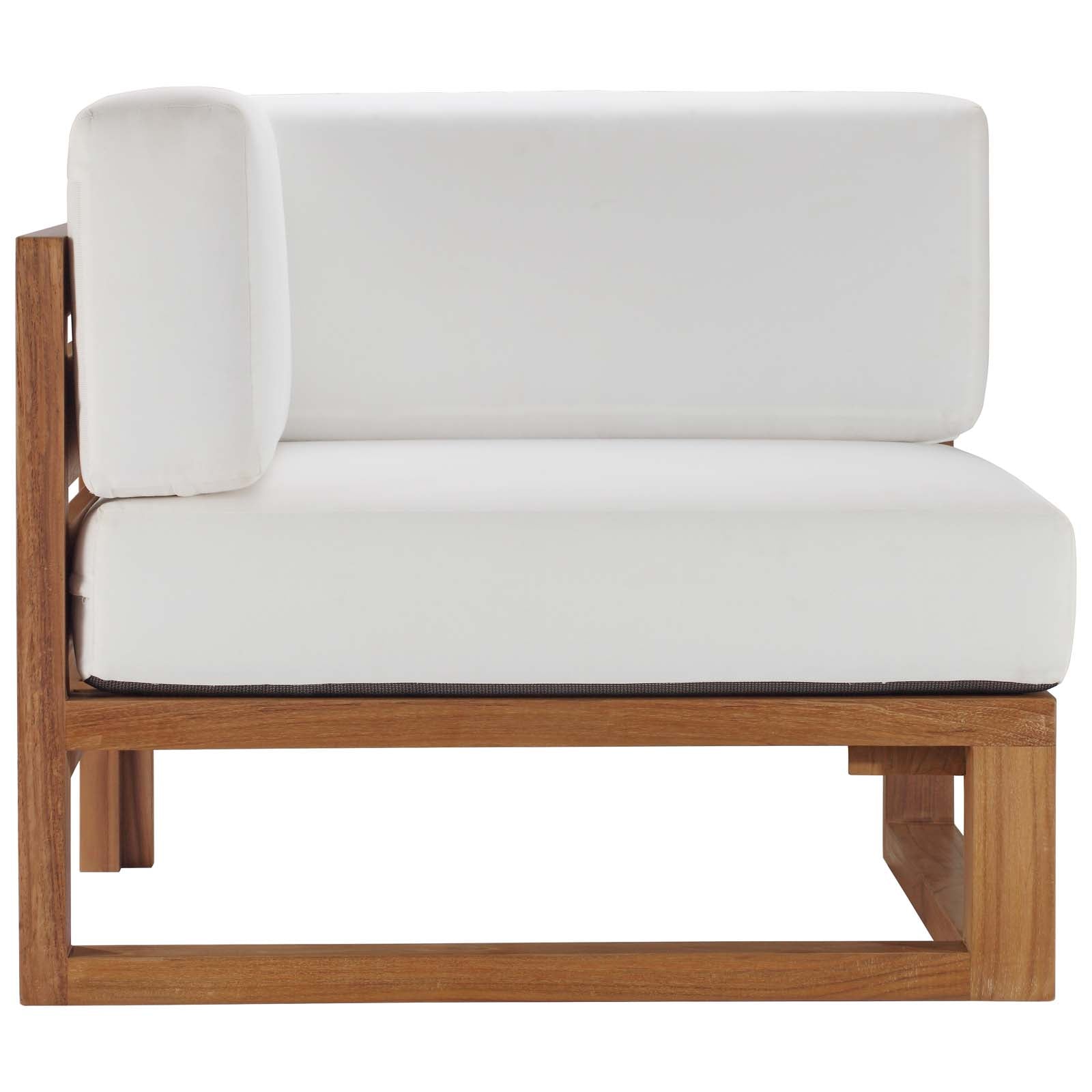 Upland Outdoor Patio Teak Wood 5-Piece Sectional Sofa Set Natural White EEI-4619-NAT-WHI-SET