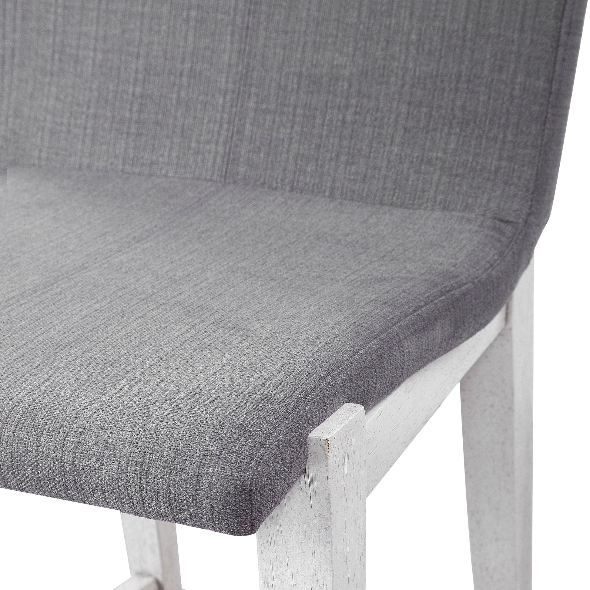 Gently Sloped Padded Seat In A Charcoal Linen Blend Performance Fabric Rests Within A Solid Wood Frame Finished In Aged White, With A Brushed Nickel Metal Kick Plate. Seat Height Is 25". Overall Depth : 22.75 in Overall Width : 20.25 in Overall Height : 38.25 in