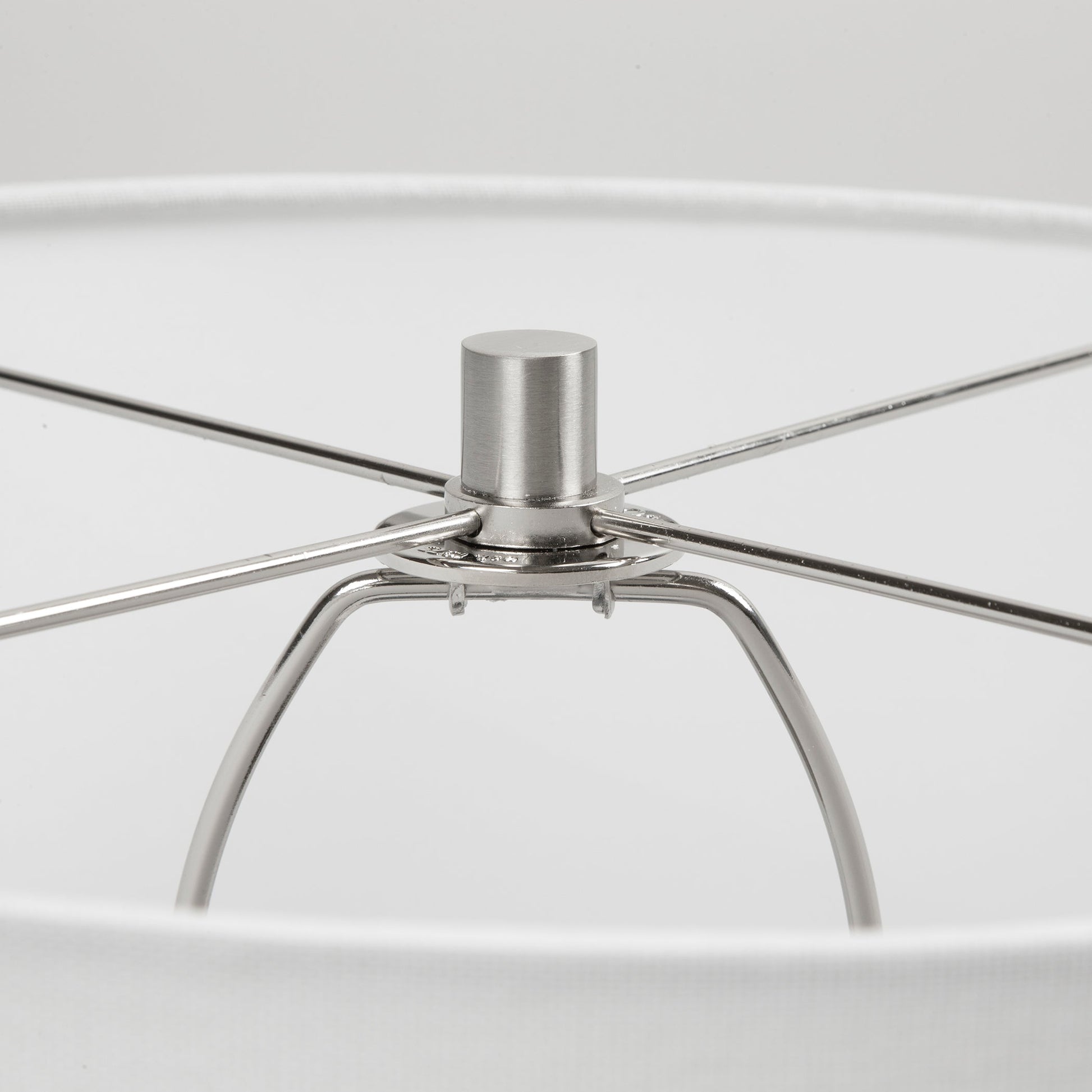 Showcasing A Curved Art Glass Base, This Elegant Table Lamp Features Rich Cobalt Blue And White Tones Displayed In A Soft Swirl Pattern With Brushed Nickel Plated Details. The Lamp Is Accented By A Hardback Drum Shade In White Linen Fabric. Overall Depth : 16 in Overall Width : 16 in Overall Height : 25 in