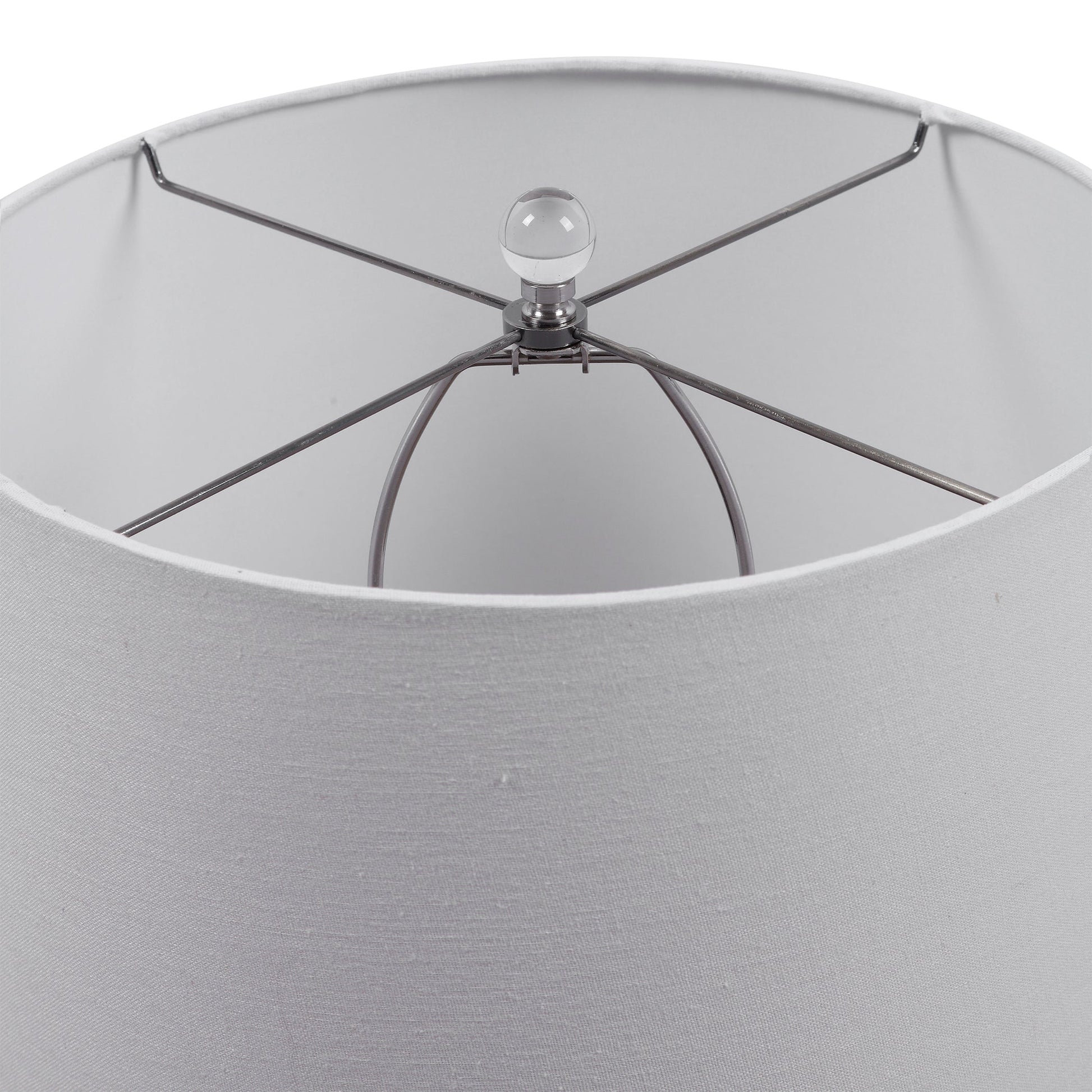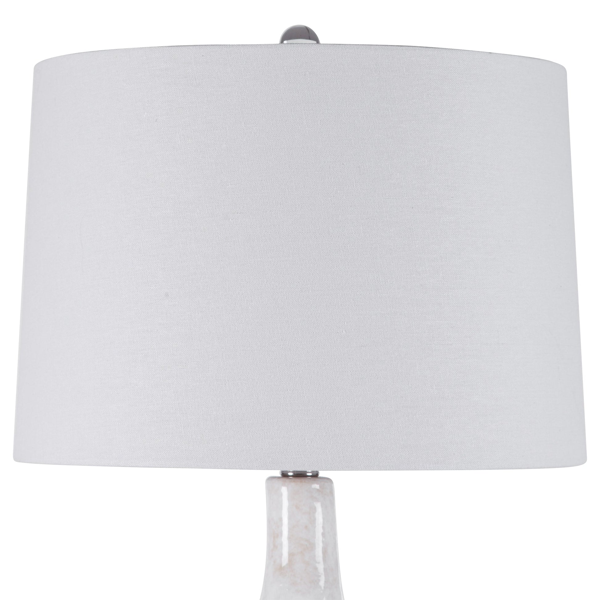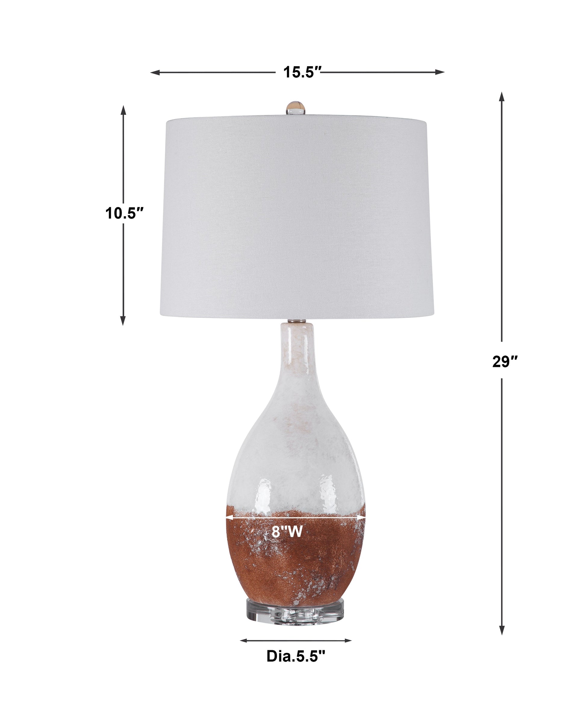 This Table Lamp Features A Ceramic Base Finished In An Earthy Terracotta Rust That Transitions Into A Crackled Aged White Glaze, Accented With Brushed Nickel Plated Details And A Thick Crystal Foot. The Slightly Tapered Round Hardback Shade Is A White Linen Fabric. Overall Depth : 15.5 in Overall Width : 15.5 in Overall Height : 29 in