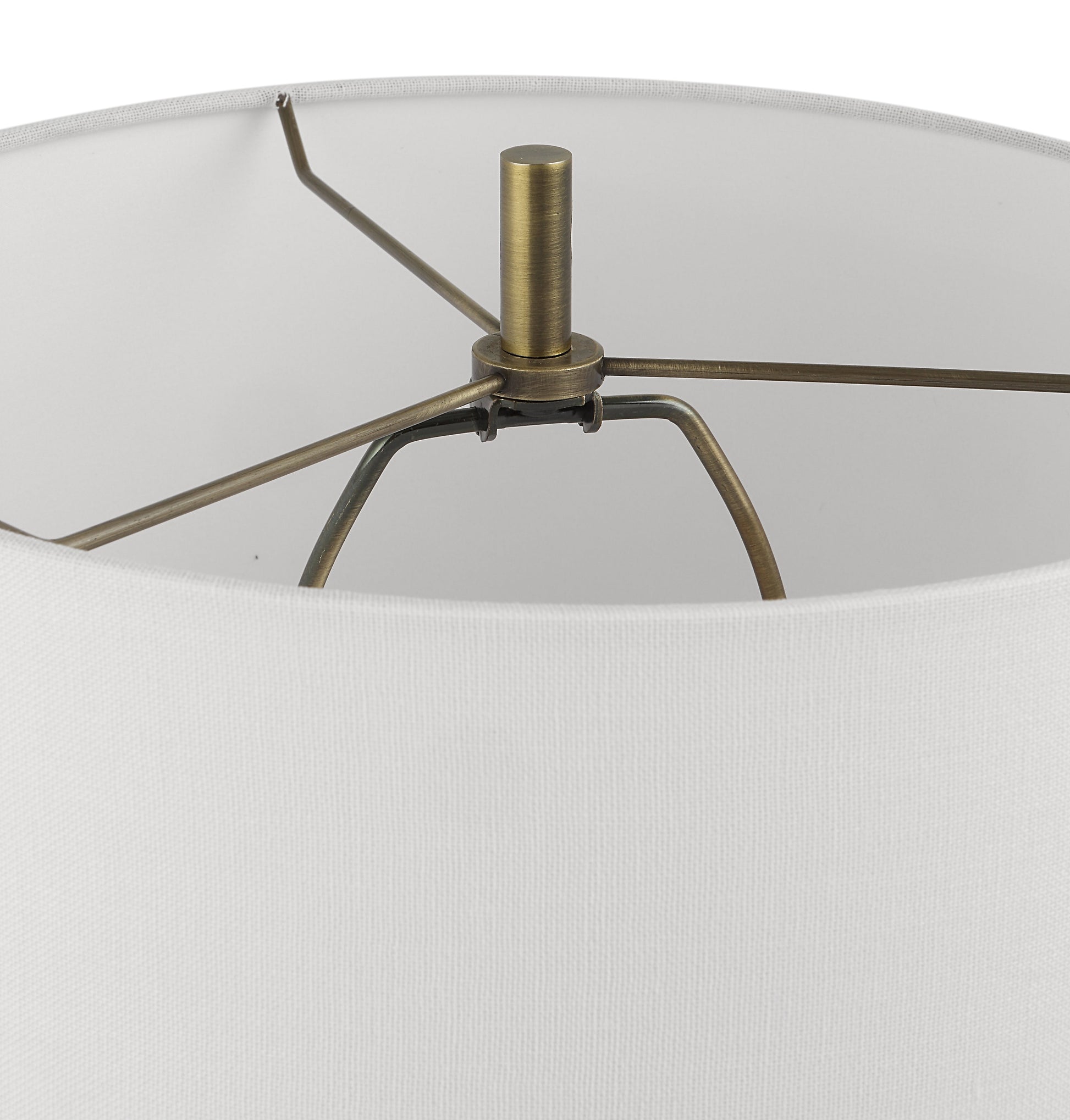 Showcasing A Classic Trumpet Shape, This Buffet Lamp Is Handcrafted From A Man-made Black Stone, Displayed On A Thick Crystal Foot, Paired With Brushed Brass Plated Accents. A White Fabric Shade Completes The Piece. Overall Depth : 12 in Overall Width : 12 in Overall Height : 34 in