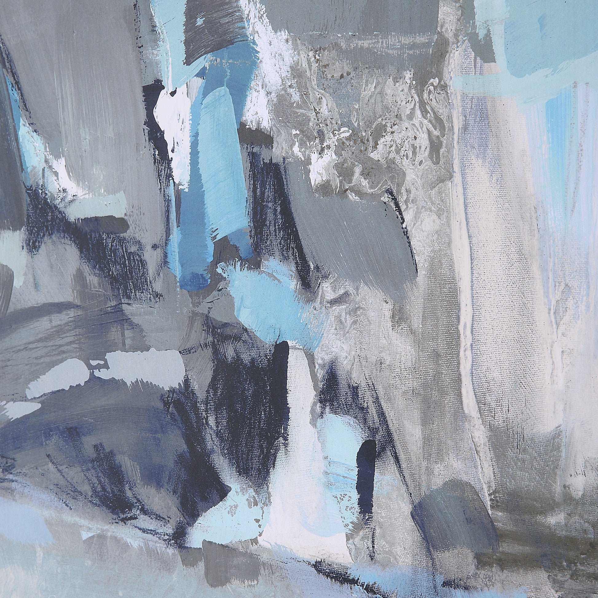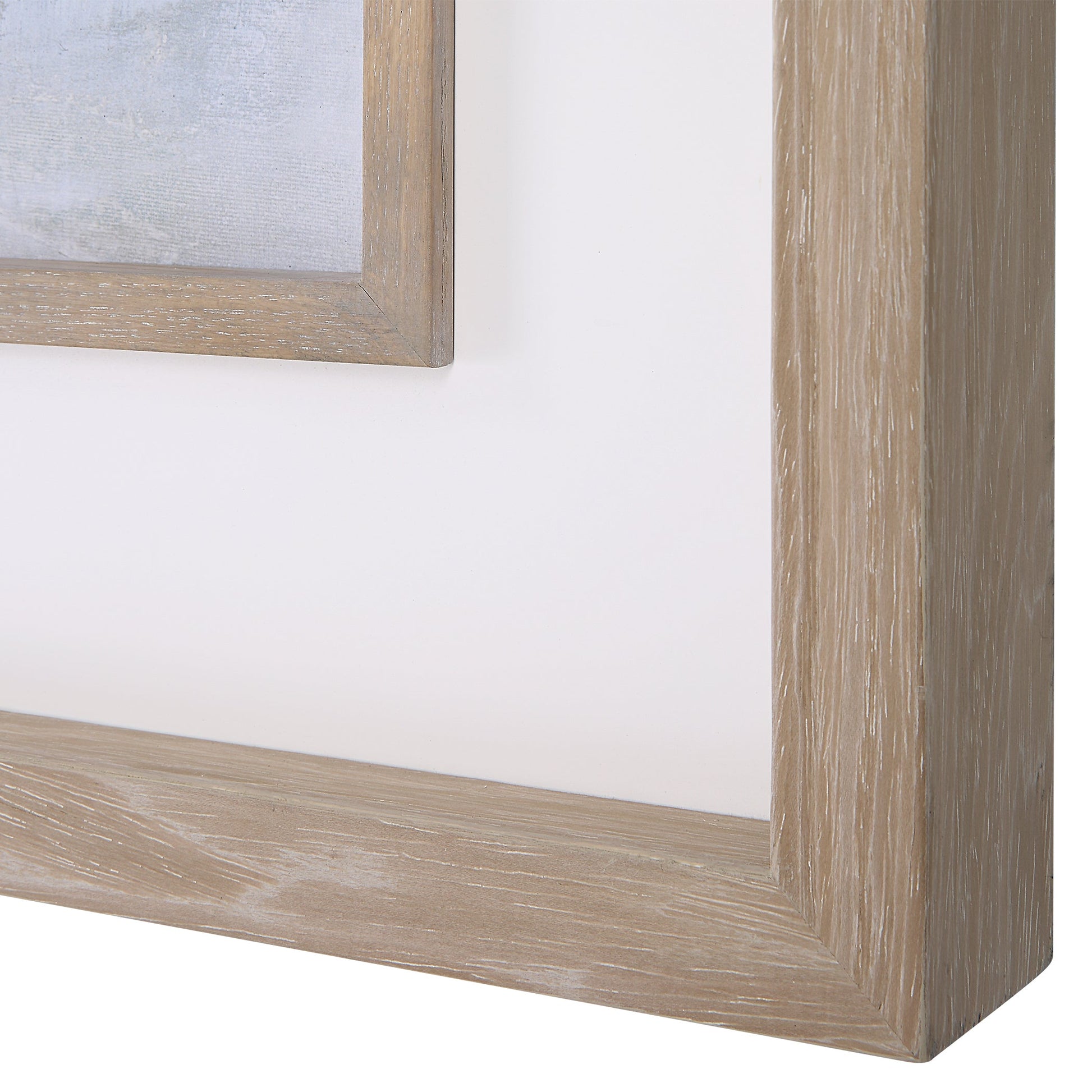 Misty Moonlight Is A Stunning Abstract Study Combining Cool Pewter Gray And White With Punches Of Cobalt And Powder Blue. Surrounded By A Naturally Finished Pine Wood Frame And Fillet With A Satin White Mat. Printed On Paper With Special Matte Finish. Artwork By Grace Rowan. Overall Depth : 2 in Overall Width : 47.25 in Overall Height : 47.25 in