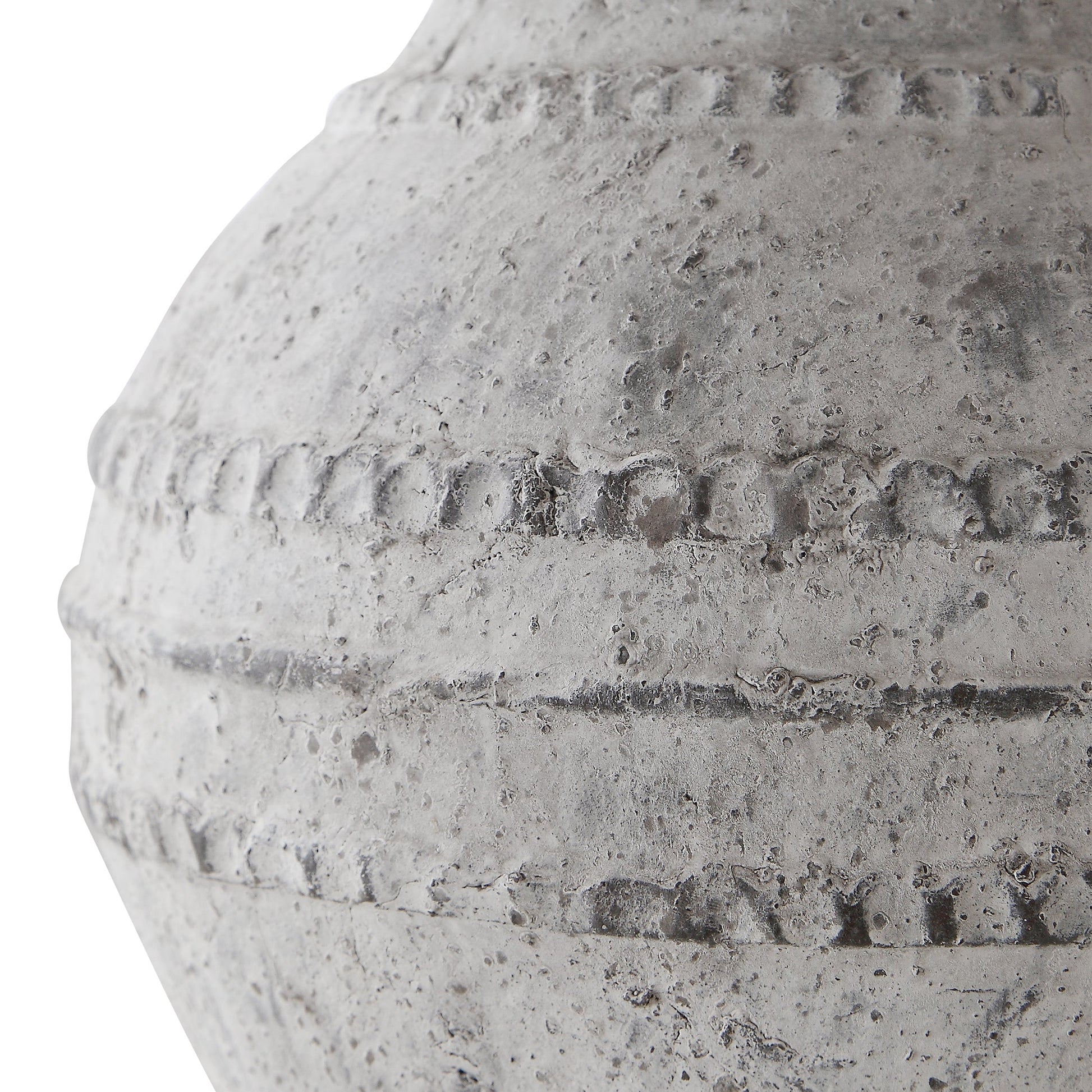 Showcasing An Old-world Style, This Ceramic Table Lamp Has A Heavily Distressed Stone Ivory Finish And Aged Gray Undertones, Accented With Brushed Nickel Plated Details. The Hardback Drum Shade Is A Warm, Light Gray Linen Fabric. Overall Depth : 18 in Overall Width : 18 in Overall Height : 25.5 in