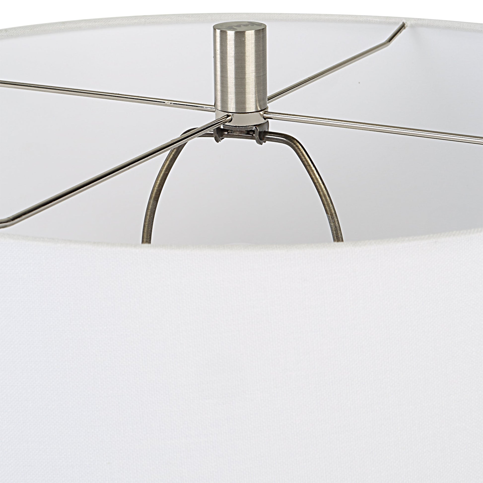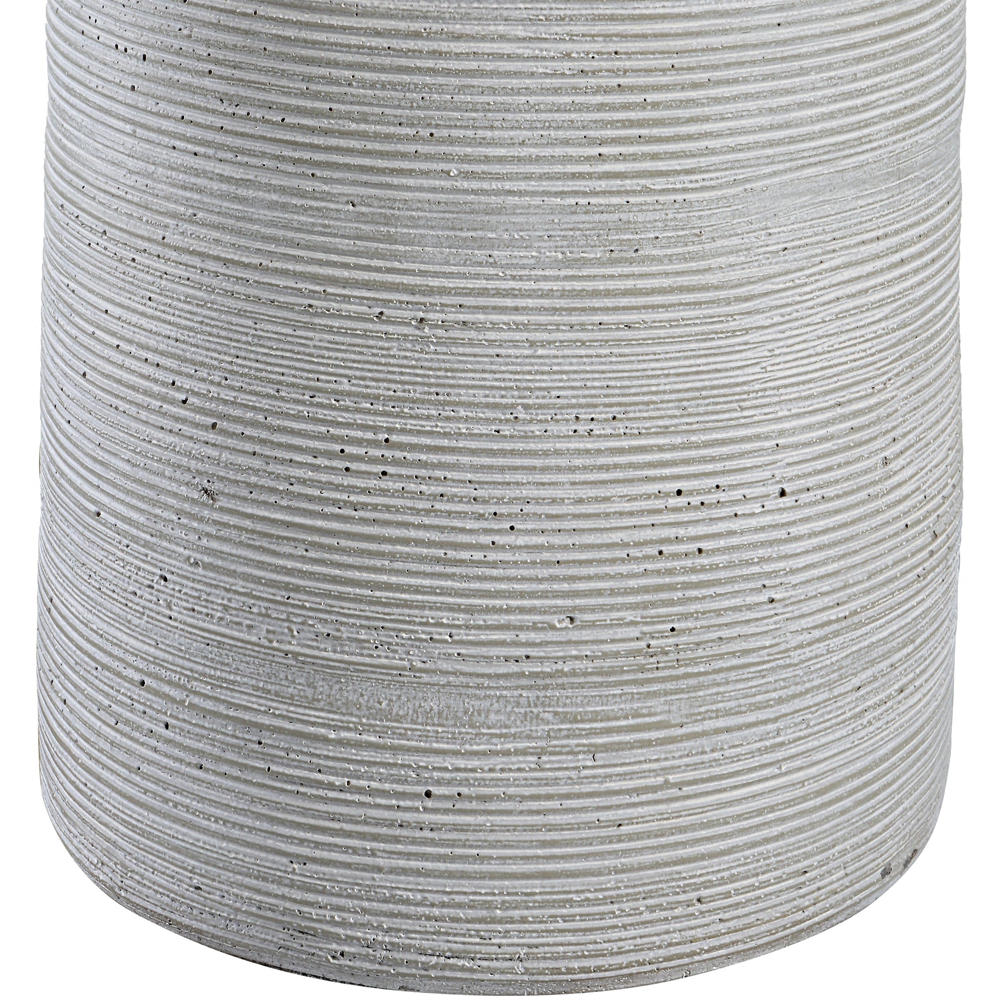 Handcrafted In An Artisanal Style, This Table Lamp Is Formed From Ceramic In Neutral Off-white And Gray Tones With Carved Ring Detailing. Steel Accents Are Finished In A Complementary Brushed Nickel. The Hardback Drum Shade Is Covered In A White Linen Fabric. Overall Depth : 18 in Overall Width : 18 in Overall Height : 27.5 in