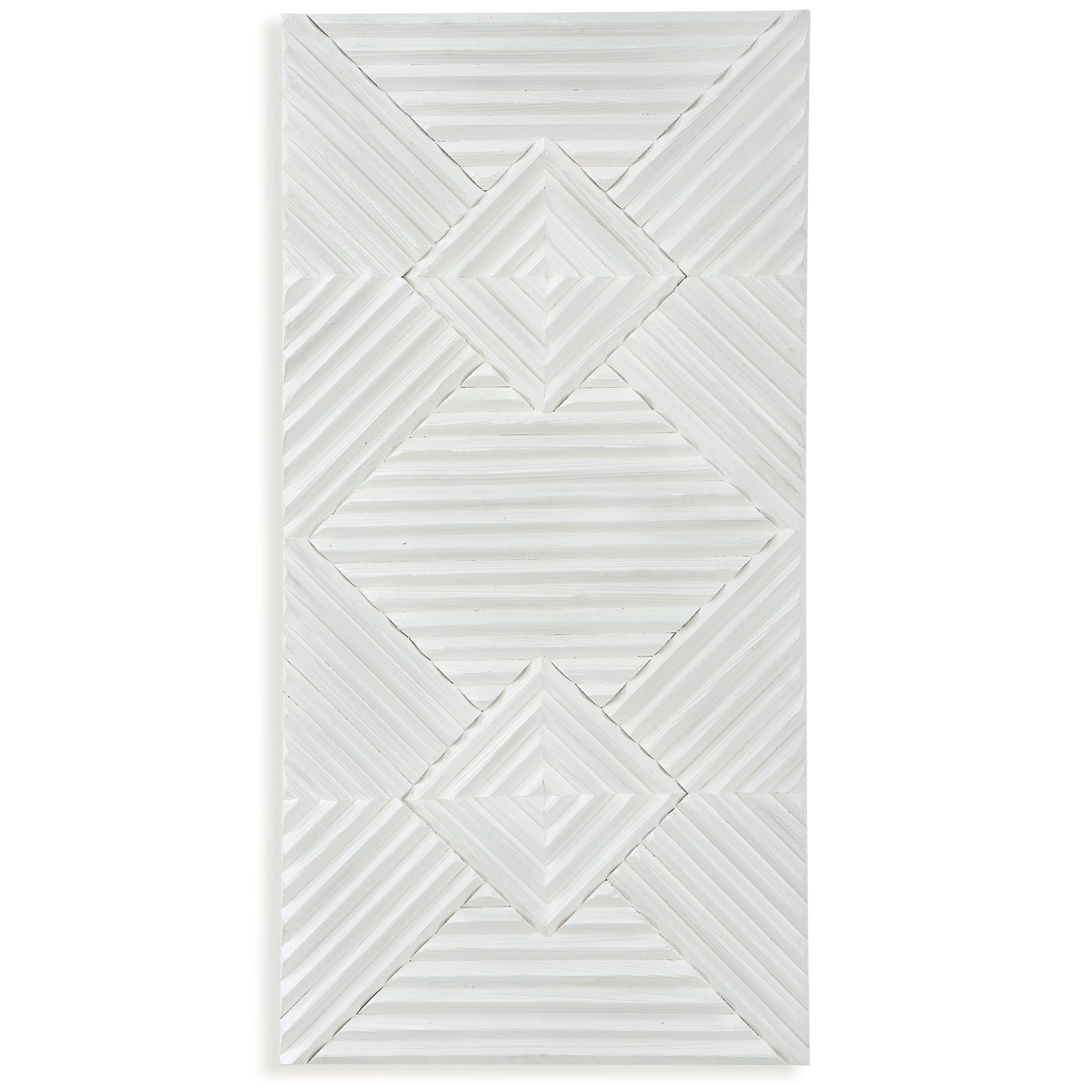 This Striking Wood Wall Panel Showcases A Graphic Geometric Design Of Natural Fir Wood In A Soft White Washed Finish. Group Multiple Panels Together For An Even More Impactful Installation. Overall Depth : 1.625 in Overall Width : 24 in Overall Height : 47.625 in