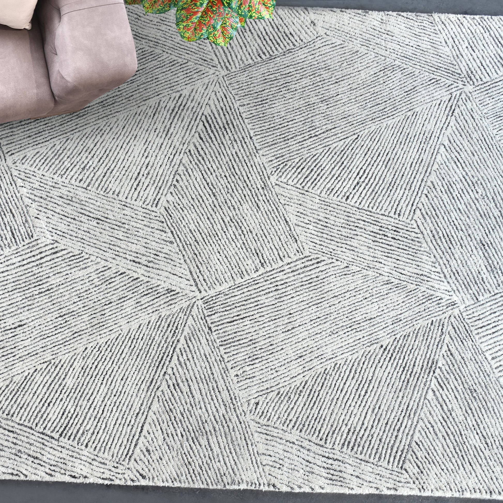 This Hand Tufted Rug Features Geometric Patterns With Linear Details In Ivory And Gray Wool In A Medium Cut Pile. Overall Depth : 1 in Overall Width : 96 in Overall Height : 120 in
