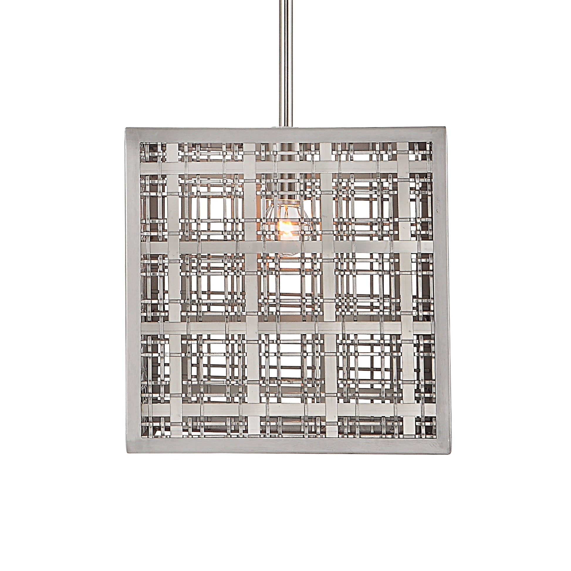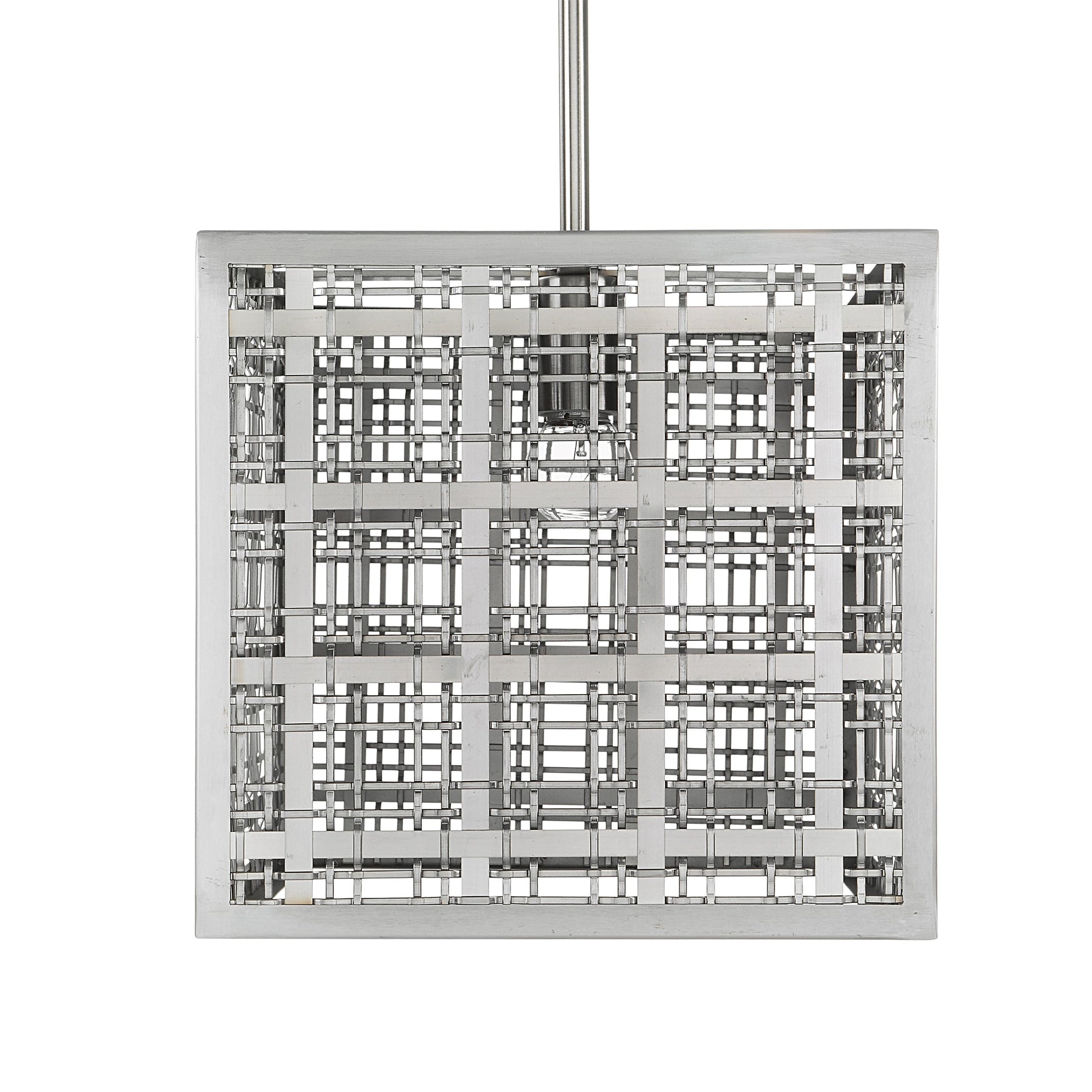 Plaid Patterned Woven Satin Nickel Strips Give Us An Updated Traditional Feel For This Classic Square Pendant. 1-60 Watt Max Edison Socket. Bulb Not Included. Supplied With 15' Wire, 3-12" Stems And 1-6" Stems For Adjustable Installation. Overall Depth : 10.25 in Overall Width : 10.25 in Overall Height : 11 in