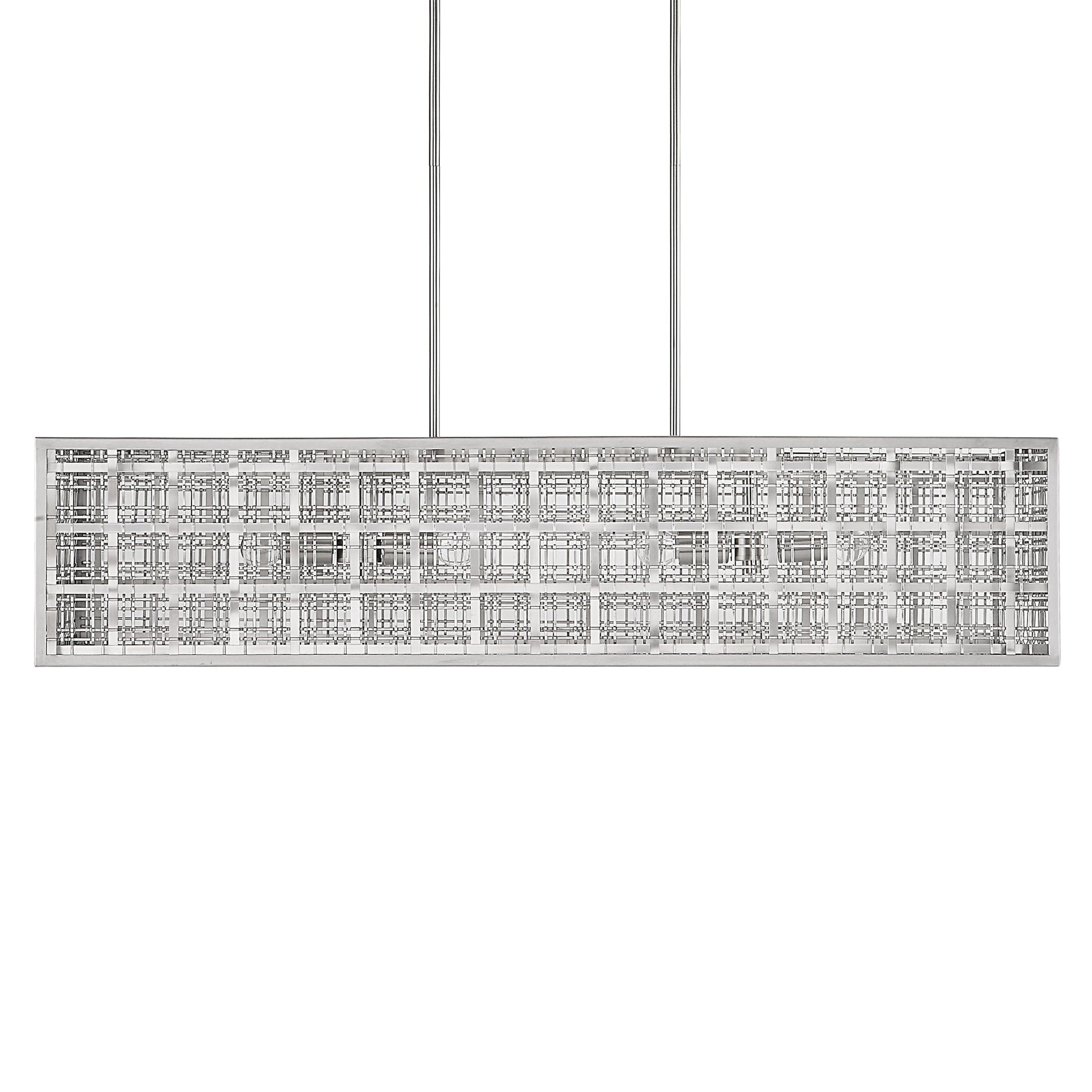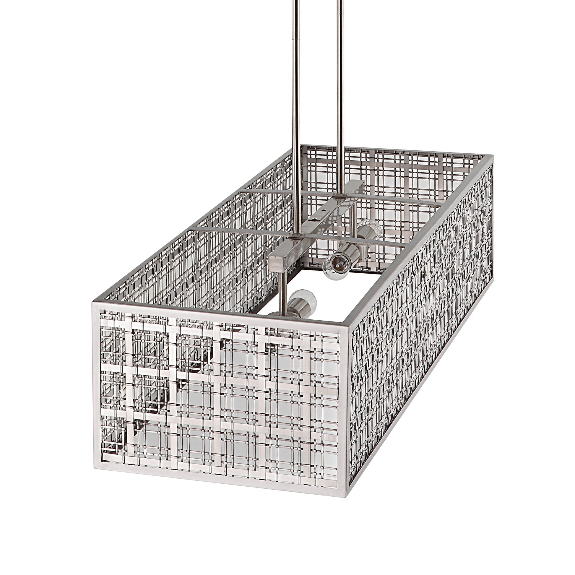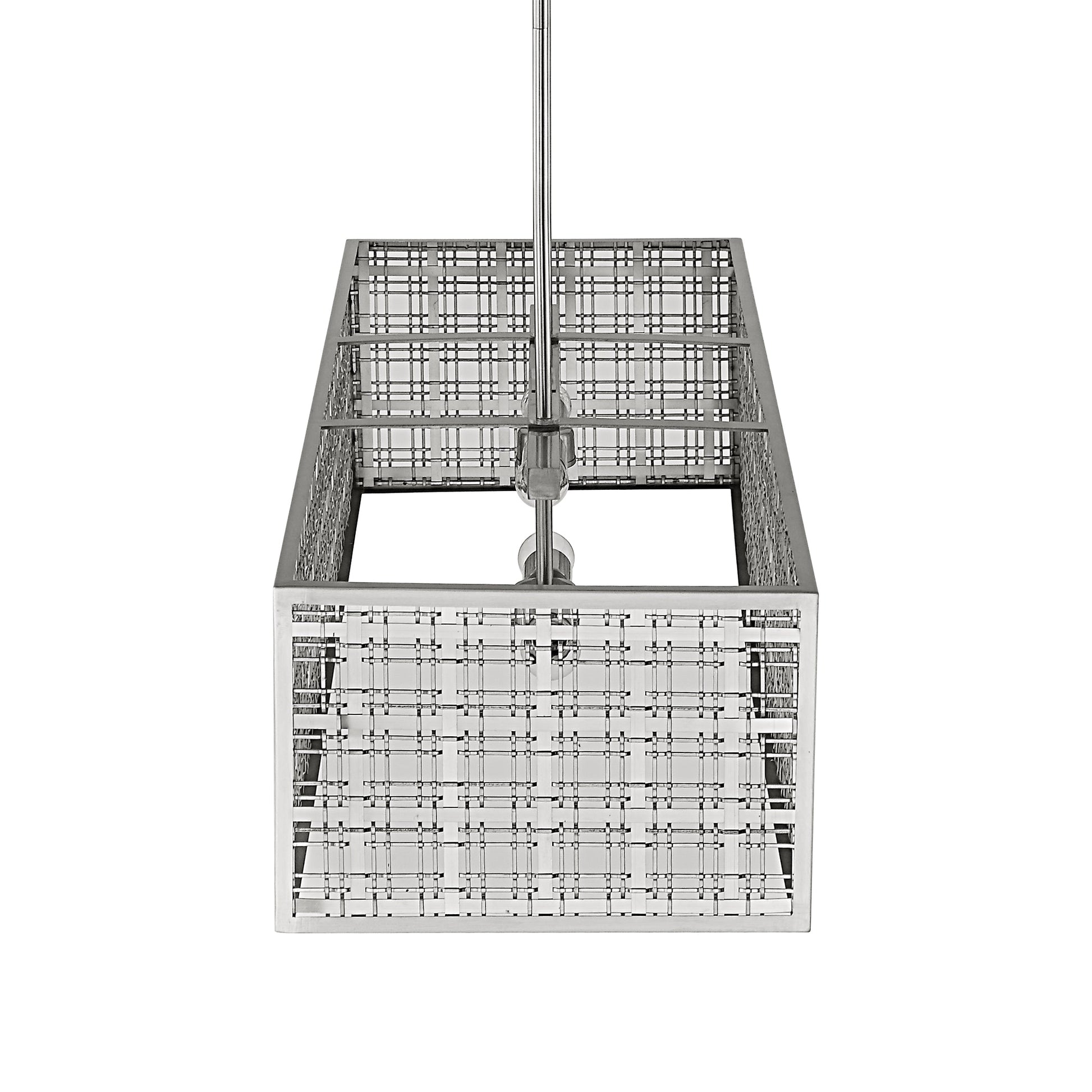 Plaid Patterned Woven Satin Nickel Strips Give Us An Updated Traditional Feel For This Classic Linear Pendant. 4-60 Watt Max Edison Sockets. Bulbs Not Included. Supplied With 15' Wire, 6-12" Stems And 2-6" Stems For Adjustable Installation. Overall Depth : 14.5 in Overall Width : 42.25 in Overall Height : 9.5 in