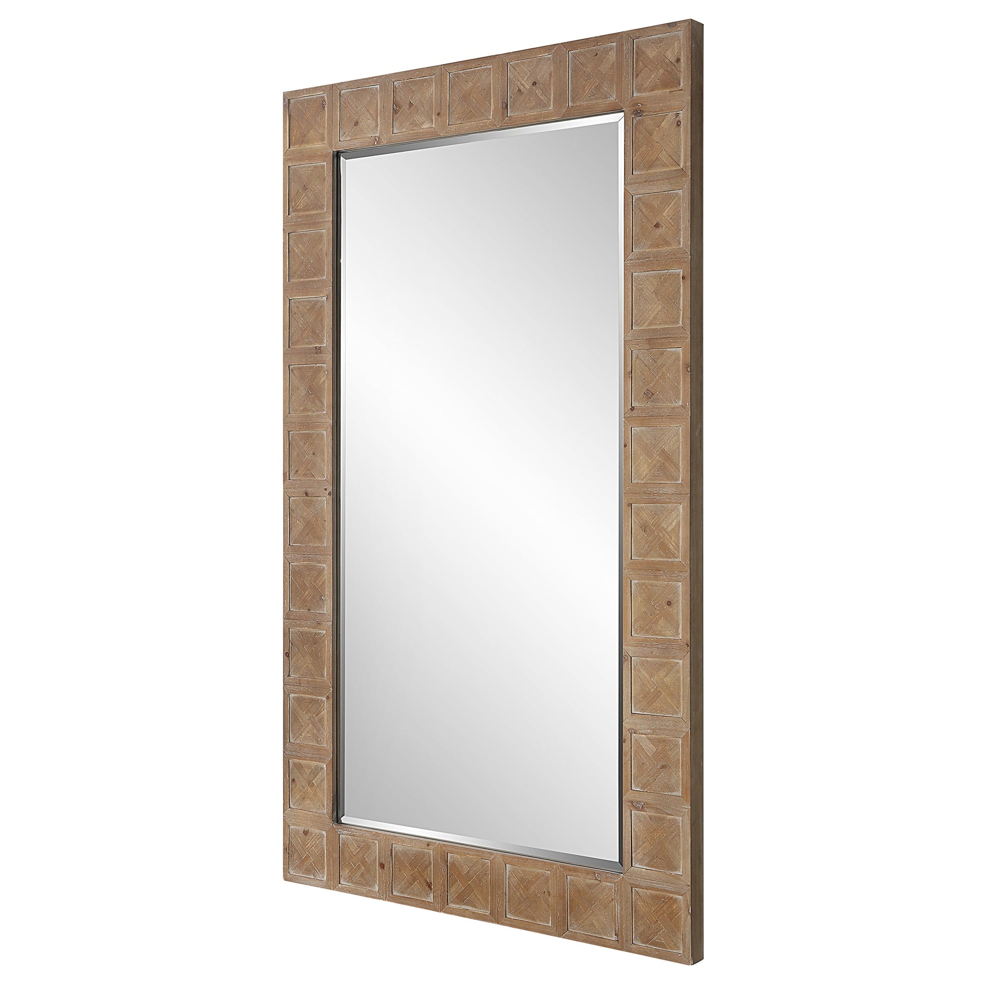 Lending Itself To Rustic Lodge And Farmhouse Styles, This Rectangular Mirror Is Crafted From Solid Fir Wood With Crossed Inlay Details Around The Frame And A Light White Wash That Accentuates The Natural Wood Grain. Mirror Has A 1 1/4" Bevel And May Be Hung Horizontal Or Vertical. Due To The Nature Of Natural Materials, Each Piece May Have Slight Variations. Overall Depth : 2 in Overall Width : 42 in Overall Height : 72 in