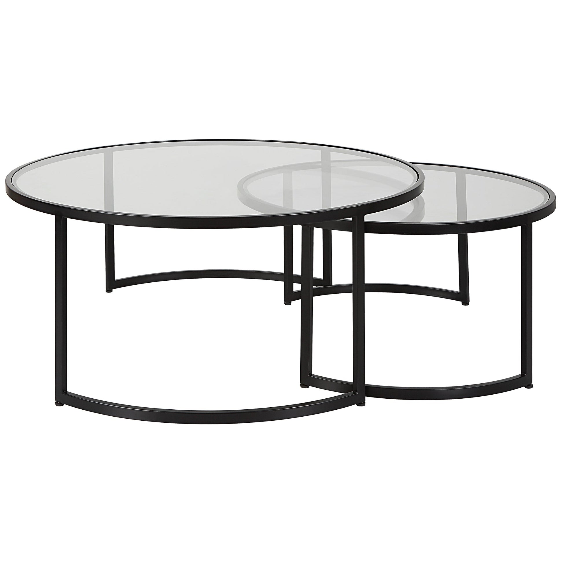 Designed To Nest As An Oversized Coffee Table With The Ability To Completely Separate, Crafted From Hand Forged Iron And Finished In A Contemporary Satin Black. Sizes: Sm-31x16, Lg-42x18 Overall Depth : 42 in Overall Width : 42 in Overall Height : 18 in