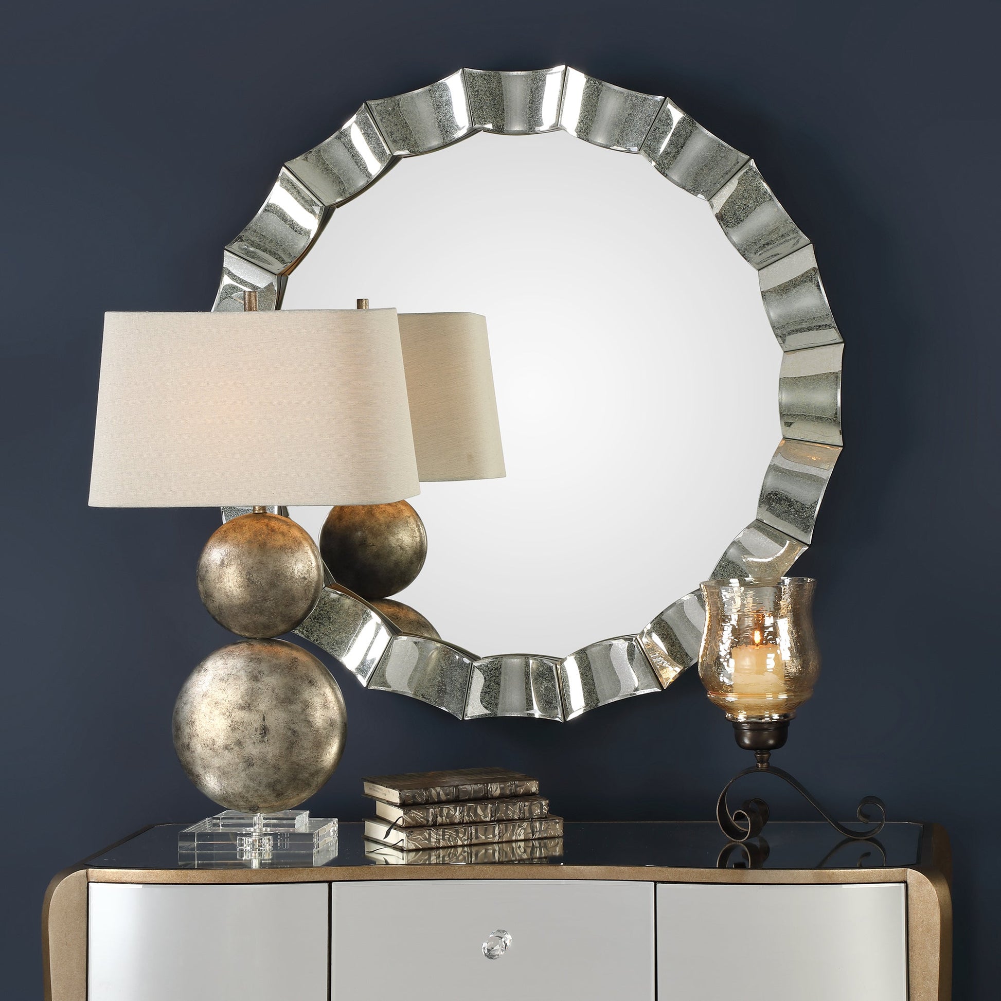 This Frame Features Individual Antiqued Mirrors With A Scalloped Design And Subtle Beveled Edges. Overall Depth : 1.5 in Overall Width : 39 in Overall Height : 39 in