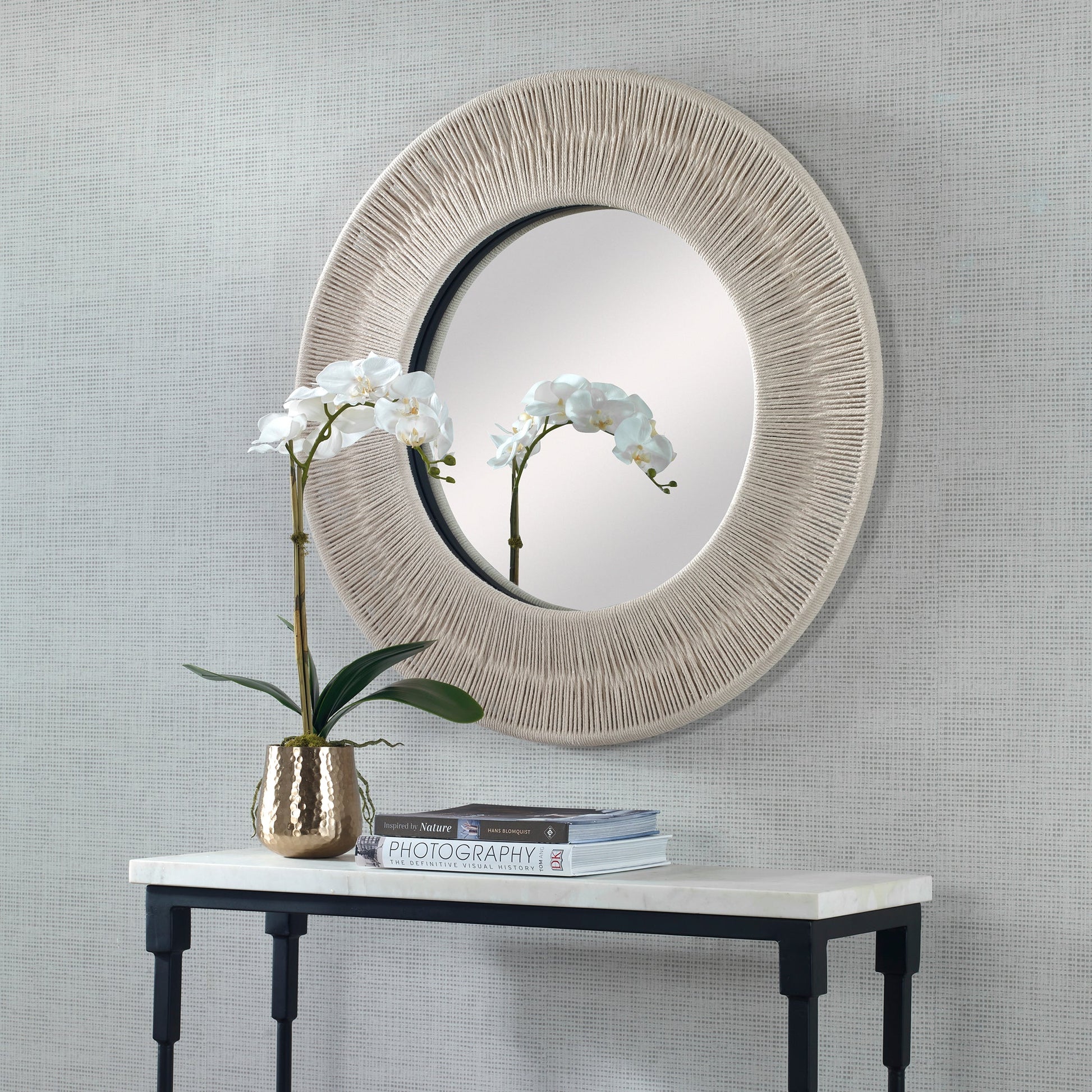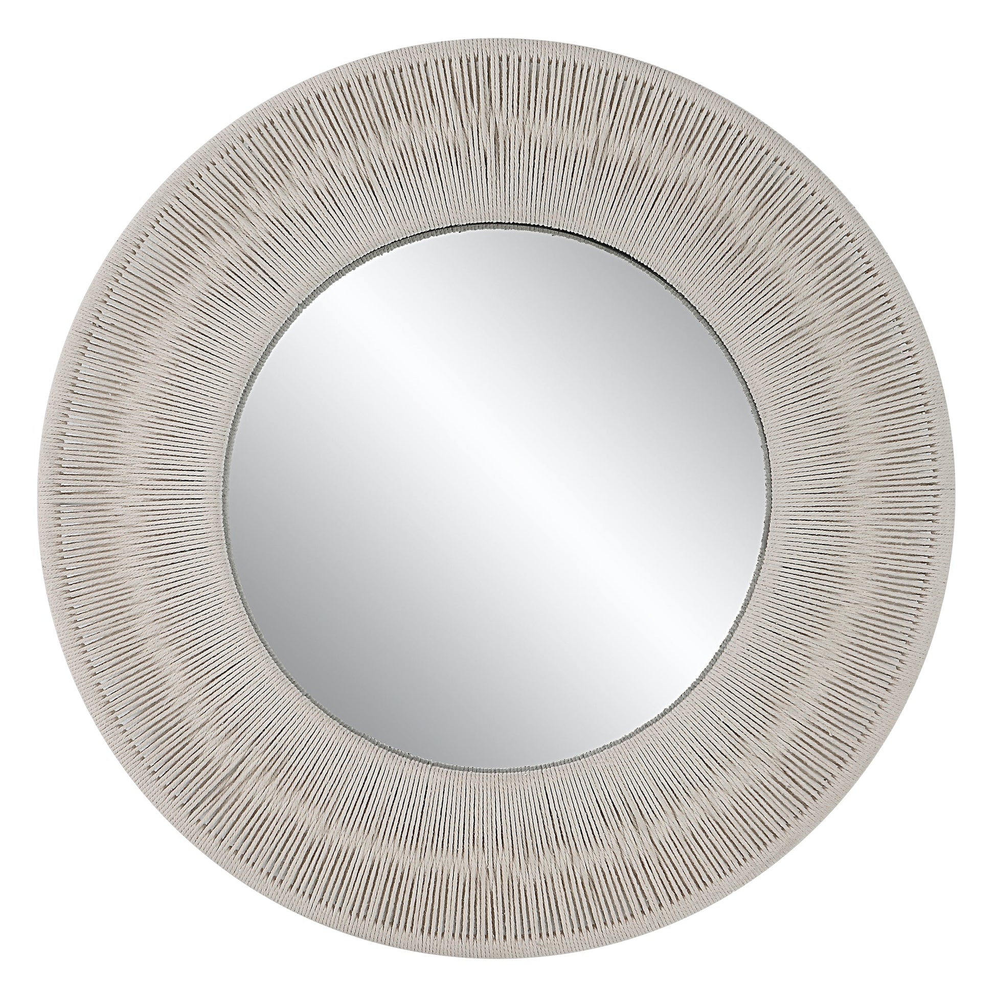 With Combined Natural Texture And Materials, This Round Mirror Pays Homage To Its Coastal Inspiration. Crisp White Rope Is Stretched Over A Solid Iron Frame To Create A Casual And Versatile Design. Overall Depth : 2.375 in Overall Width : 33 in Overall Height : 33 in