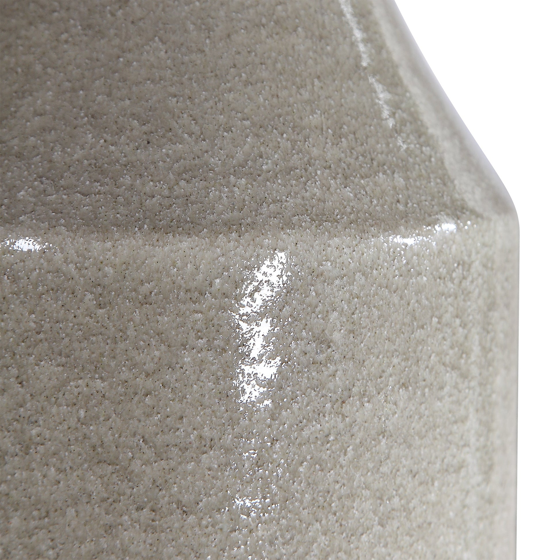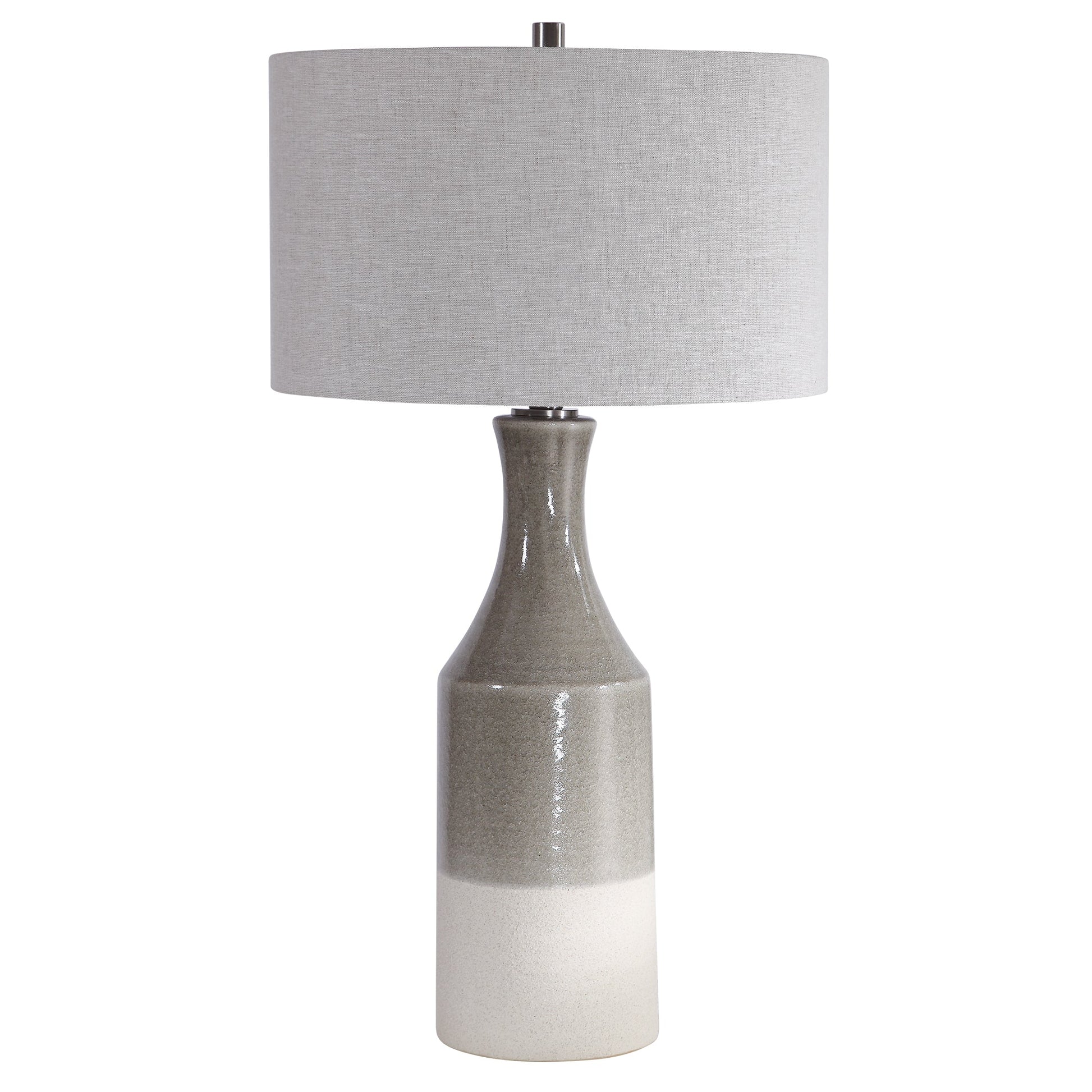 Showcasing A Bohemian Flair, This Ceramic Table Lamp Is Finished In A Glossy Warm Gray Glaze That Transitions To A Heavily Textured Ivory Bottom. The Casual Contemporary Styling Is Paired With Plated Brushed Nickel Accents. The Hardback Drum Shade Is Light Gray Linen With Natural Slubbing. Overall Depth : 17 in Overall Width : 17 in Overall Height : 31 in