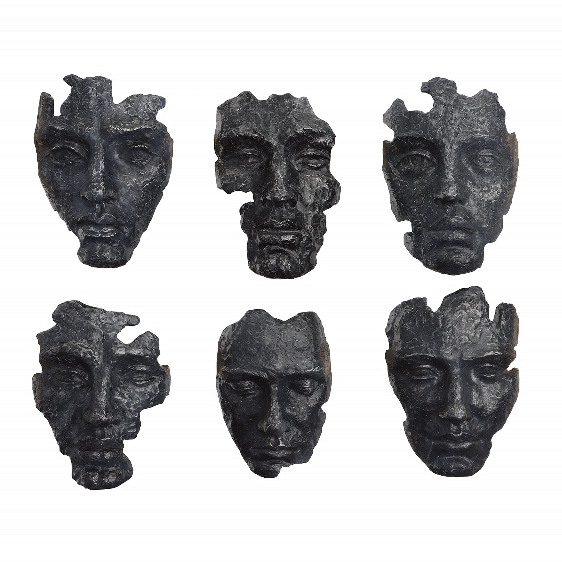 Inspired By Works From Modern Art Galleries, These Masks Are Handcrafted With A Sculpted Look In A Patinated Steel Gray Finish With Noticeable Metallic Details And Texture. Overall Depth : 5.125 in Overall Width : 9.625 in Overall Height : 14 in