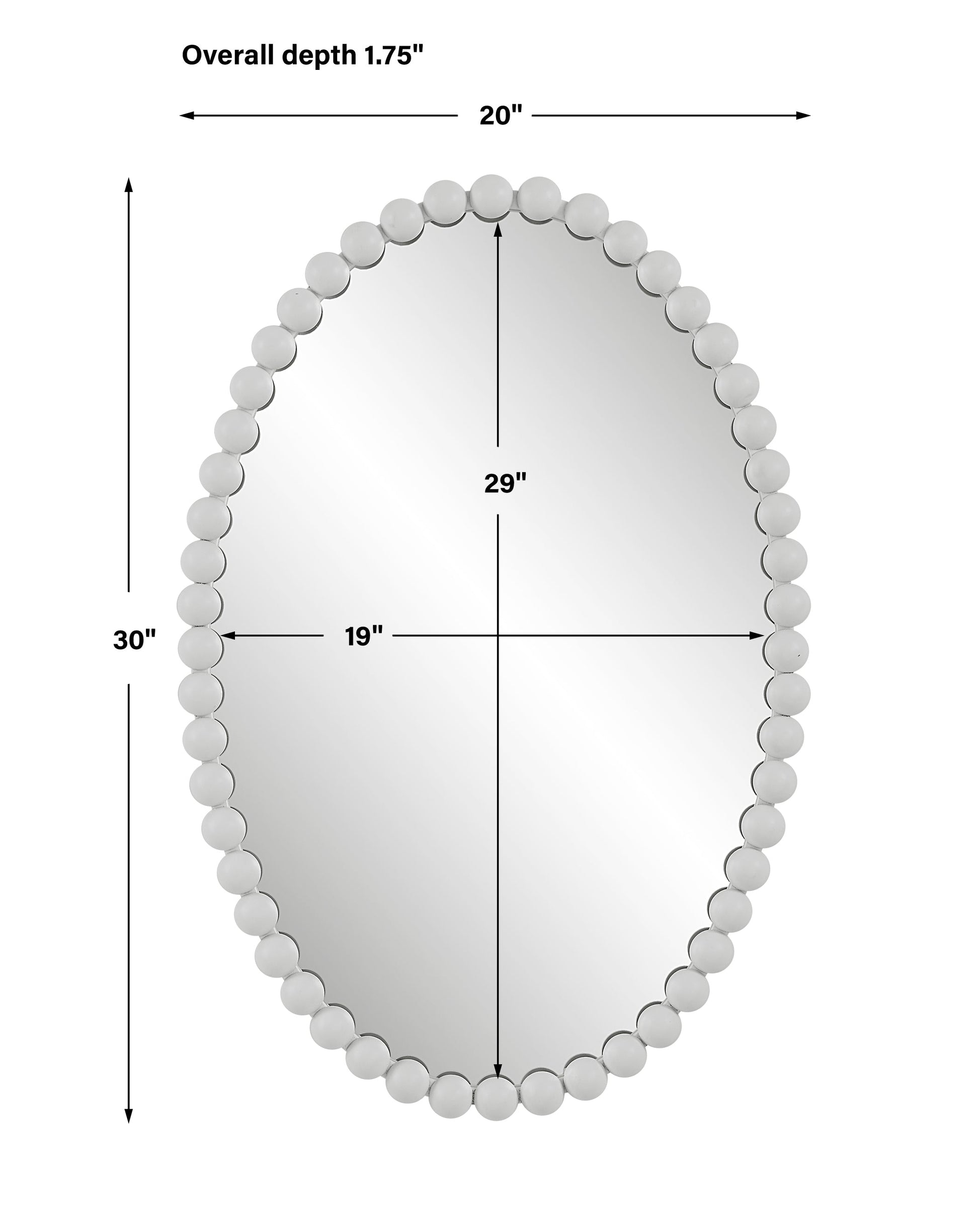 The Serna Oval Features An Elegant Curved Iron Frame With A Beaded Profile Finished In A Stylish Matte White. May Be Hung Horizontal Or Vertical. Overall Depth : 1.75 in Overall Width : 20 in Overall Height : 30 in