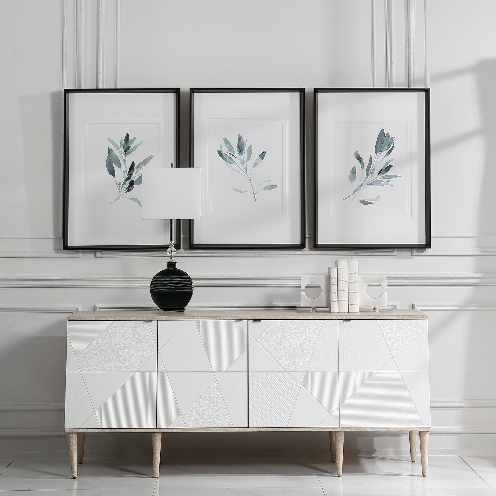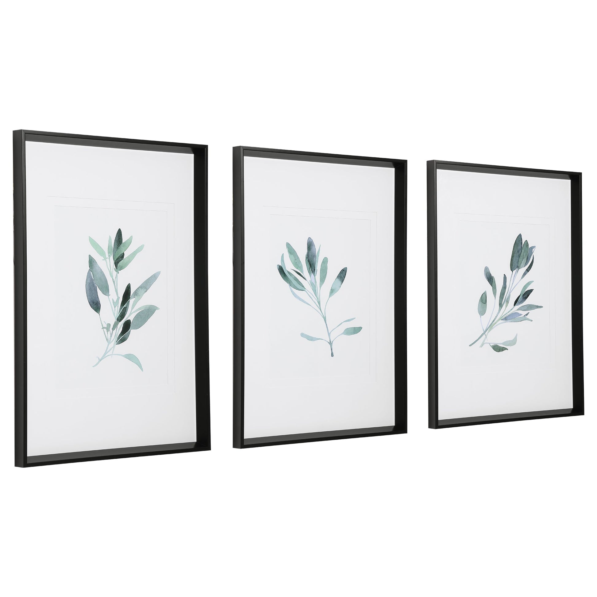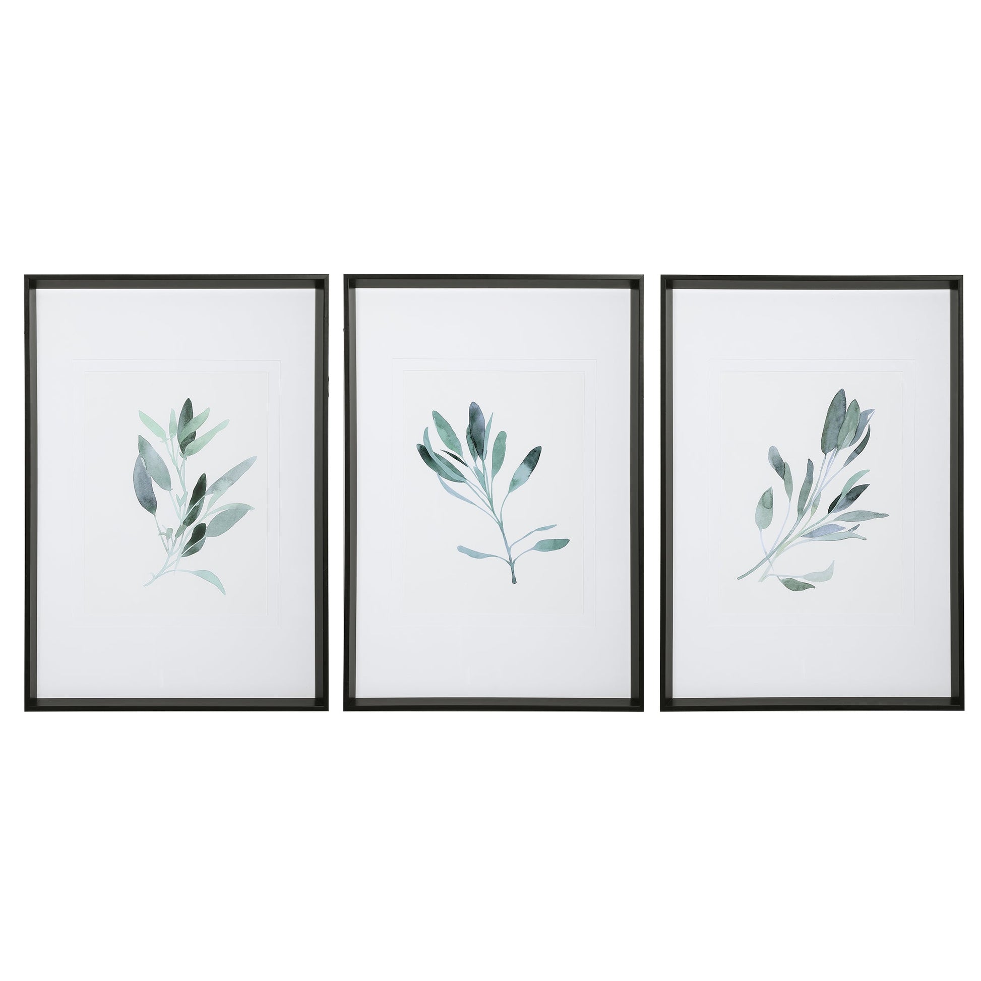 A Nod To Modern Farmhouse Style, This Set Of Artwork Showcases Individual Sage Branches Printed In A Watercolor Style. Cool Shades Of Green And Gray Blue Are Complemented By Elegant Double White Matting And A Petite Matte Black Frame, Under Glass. Artwork By Emma Scarvey. Overall Depth : 2 in Overall Width : 25.5 in Overall Height : 36.5 in