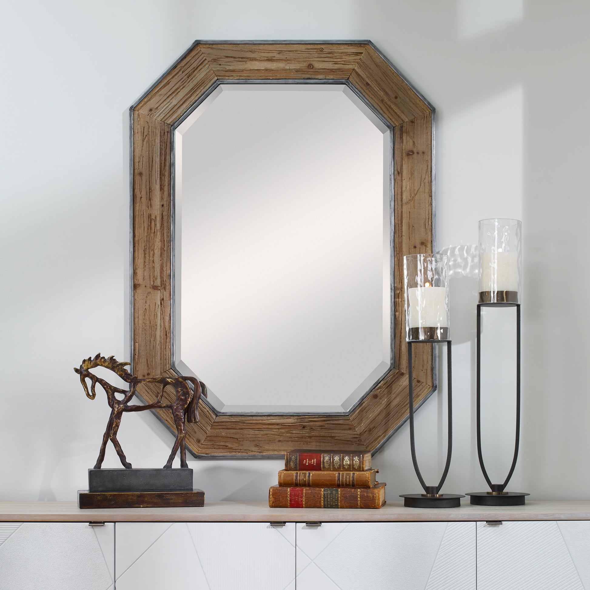 This Rustic Frame Is Made From Reclaimed Fir Wood With A Natural Finish Enhanced With A Weathered Texture, Accented With Burnished Silver Iron Details. Mirror Features A Generous 1 1/4" Bevel And May Be Hung Horizontal Or Vertical. Overall Depth : 1.75 in Overall Width : 34.875 in Overall Height : 48 in