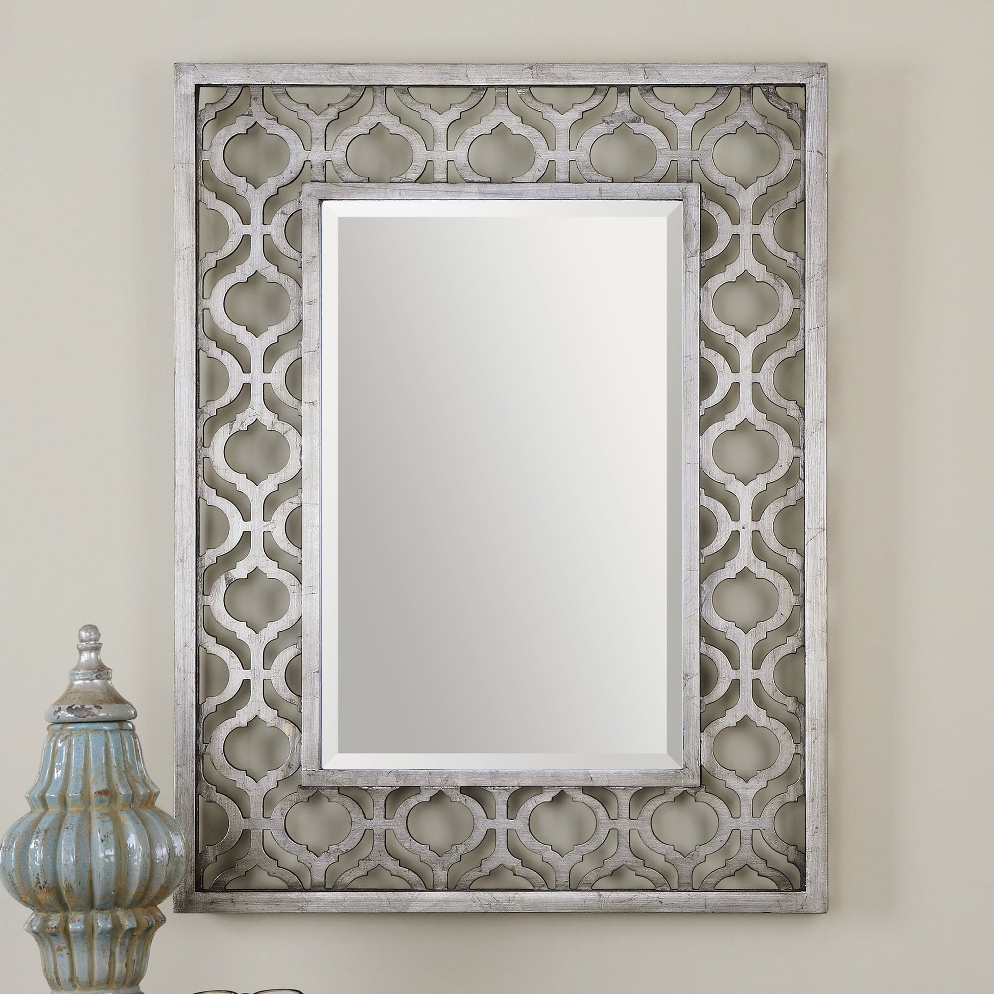 Frame Features A Decorative Design Finished In Antiqued Silver Leaf With Black Undertones. Mirror Is Beveled And May Be Hung Horizontal Or Vertical. Overall Depth : 2.25 in Overall Width : 30.75 in Overall Height : 40.375 in