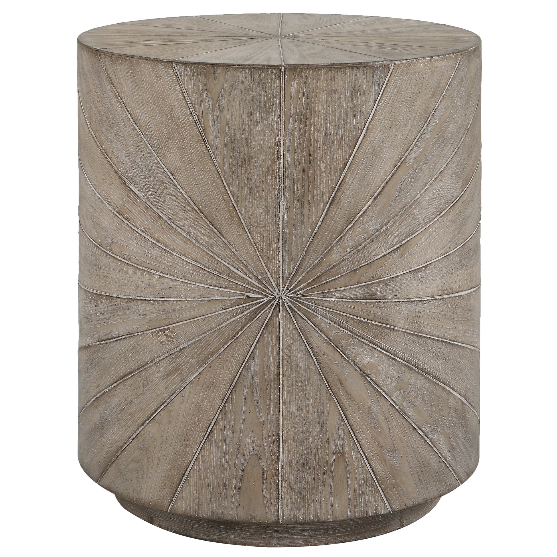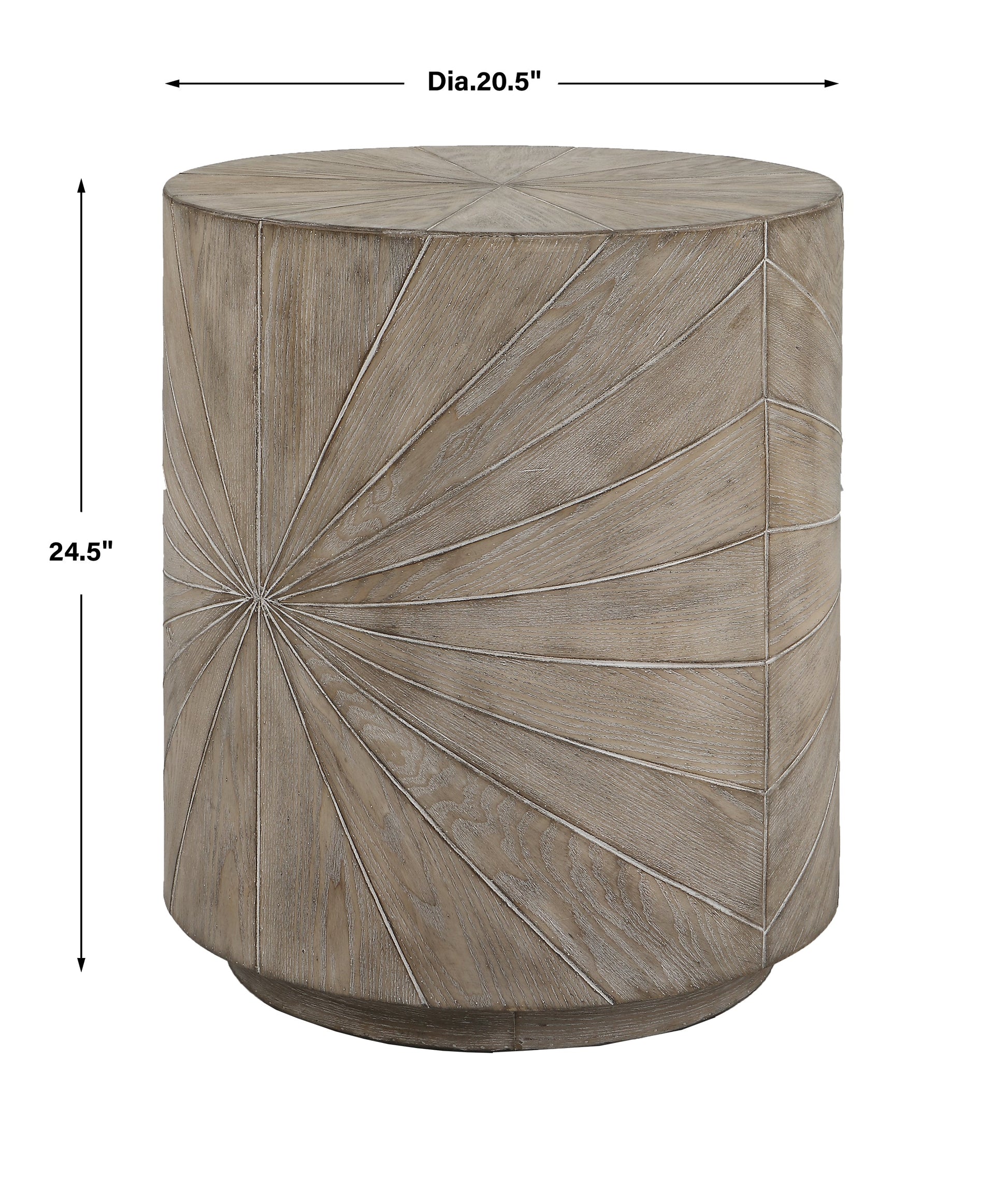 Crafted From Fir Wood Veneer, The Starshine Side Table Features A Starburst Motif Surround Finished In Warm Gray Stain With Light Cerusing That Accentuates The Natural Wood Grain. Overall Depth : 20.5 in Overall Width : 20.5 in Overall Height : 24.5 in