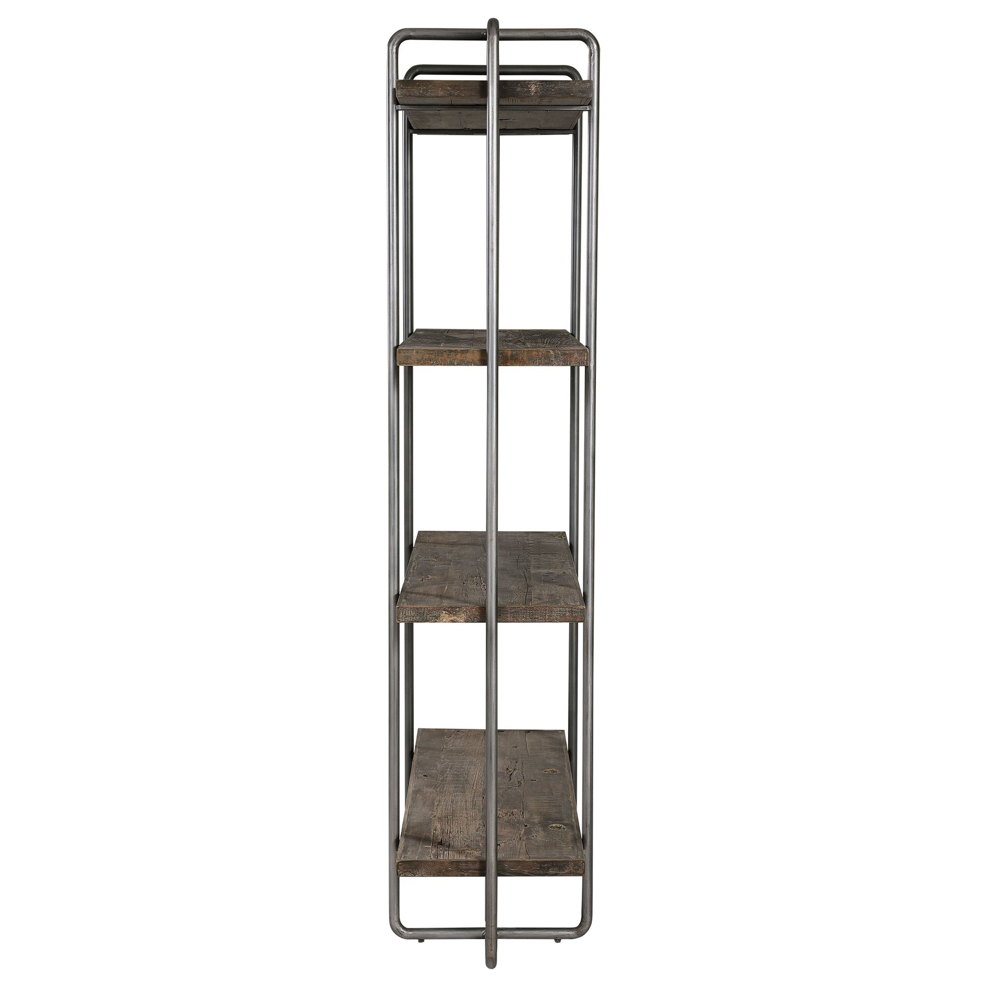 Exhibiting An Urban Industrial Feel, This Etagere Features A Steel Frame Finished In Dark Brushed Pewter. The Four Floating Shelves Are Constructed From Recycled, Reclaimed Boat Wood Collected From Old Chinese Fishing Vessels. This Statement Piece Showcases Years Of Use With Natural Wood Grain Texture That Has Subtle Hints Of Color. Solid Wood Will Continue To Move With Temperature And Humidity Changes, Which Can Result In Cracks And Uneven Surfaces, Adding To Its Authenticity And Character. Overall Depth : 18 in Overall Width : 49.5 in Overall Height : 79.5 in