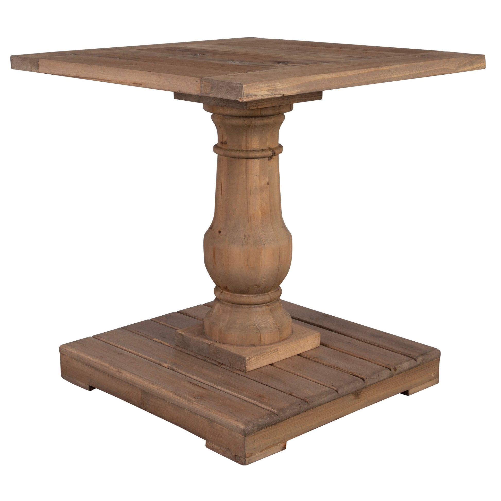 Solidly Constructed Of Salvaged Fir Lumber And Hand Turned Baluster. Sun Faded, Distressed Patina Is Finished With A Stony Gray Wash. Solid Wood Will Continue To Move With Temperature And Humidity Changes, Which Can Result In Small Cracks And Uneven Surfaces, Adding To Its Authenticity And Character. Overall Depth : 26 in Overall Width : 26 in Overall Height : 26.5 in