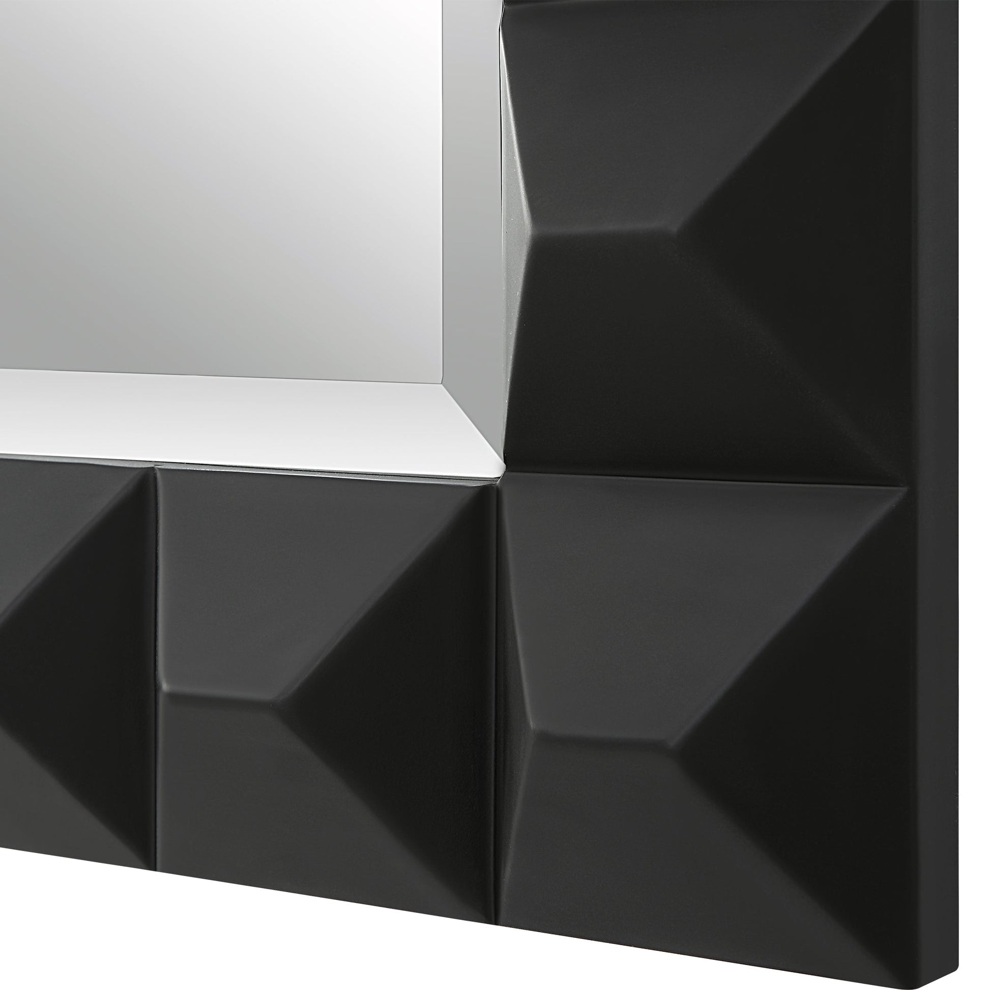 The Studded Mirror Has An Updated Appeal To A Timeless Design Featuring A 3-dimentional Pattern Finished In A Sleek Matte Black. Mirror Has A Generous 1 1/4" Bevel. May Be Hung Horizontal Or Vertical. Overall Depth : 2 in Overall Width : 31.75 in Overall Height : 43.25 in