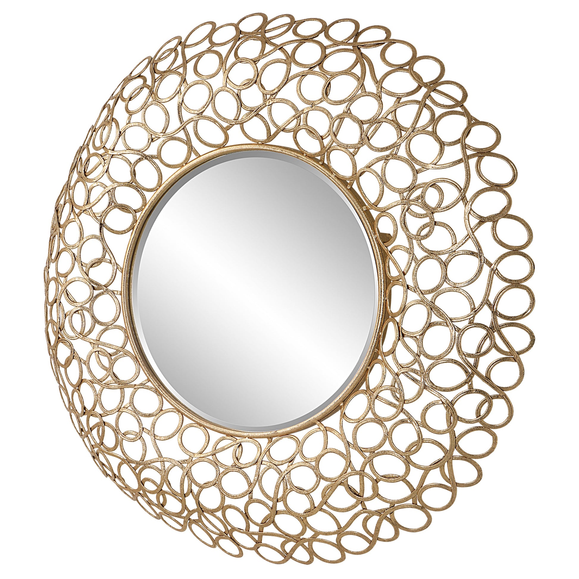 Handcrafted From Solid Iron, This Round Features A Dramatic 3-dimensional Frame Made From Curled Gold Leaf Details. Mirror Features A Generous 1 1/4" Bevel. Overall Depth : 3.5 in Overall Width : 41.75 in Overall Height : 41.75 in