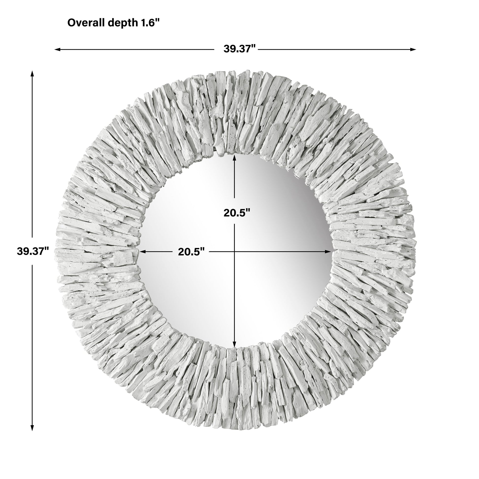 This Round Mirror Is Artfully Crafted From Natural Teak Branches, Pieced Together To Create A Beautifully Sculpted Look And Finished In A Matte White. Due To The Nature Of Natural Materials, Each Piece May Have Slight Variations. Overall Depth : 39.37 in Overall Width : 39.37 in Overall Height : 1.6 in