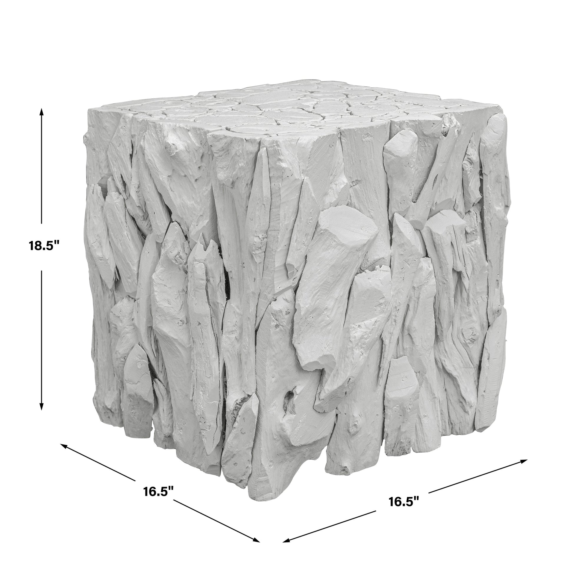 Whitewashed Teak Wood Skillfully Pieced Together Into An Artistic And Precise Sculpture With A Smoothly Sanded Top And Open Bottom, Multiplying Its Use As A Table, Seat, Or Box Planter. Overall Depth : 16.5 in Overall Width : 16.5 in Overall Height : 18.5 in
