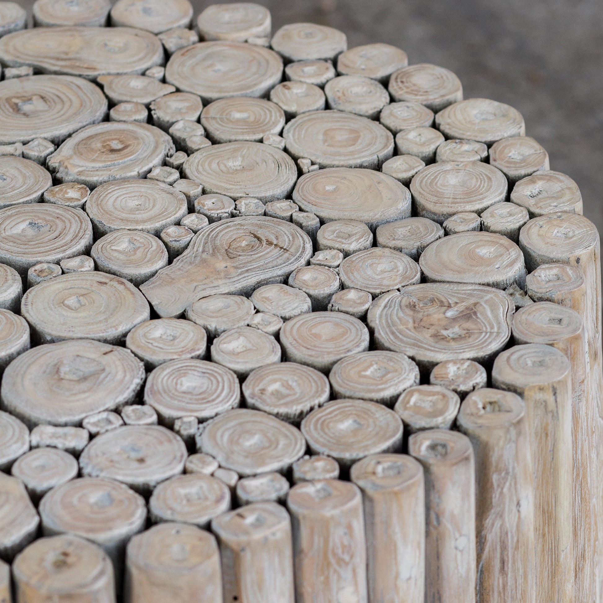 Artfully Constructed From Natural Teak Wood Pieces, This End Table Features A Bleached Driftwood Finish That Enhances The Natural Wood Grain. Overall Depth : 21.5 in Overall Width : 21.5 in Overall Height : 24 in