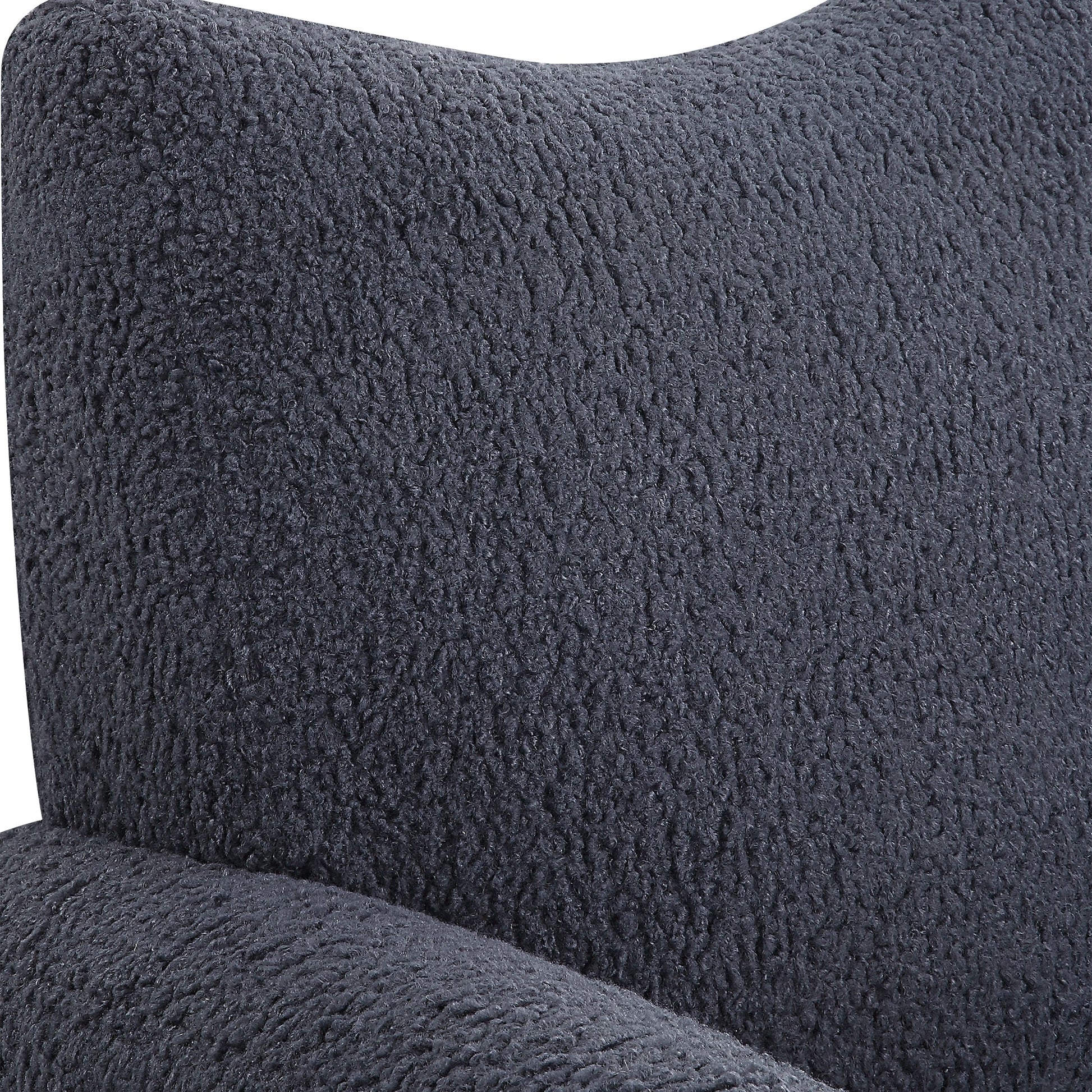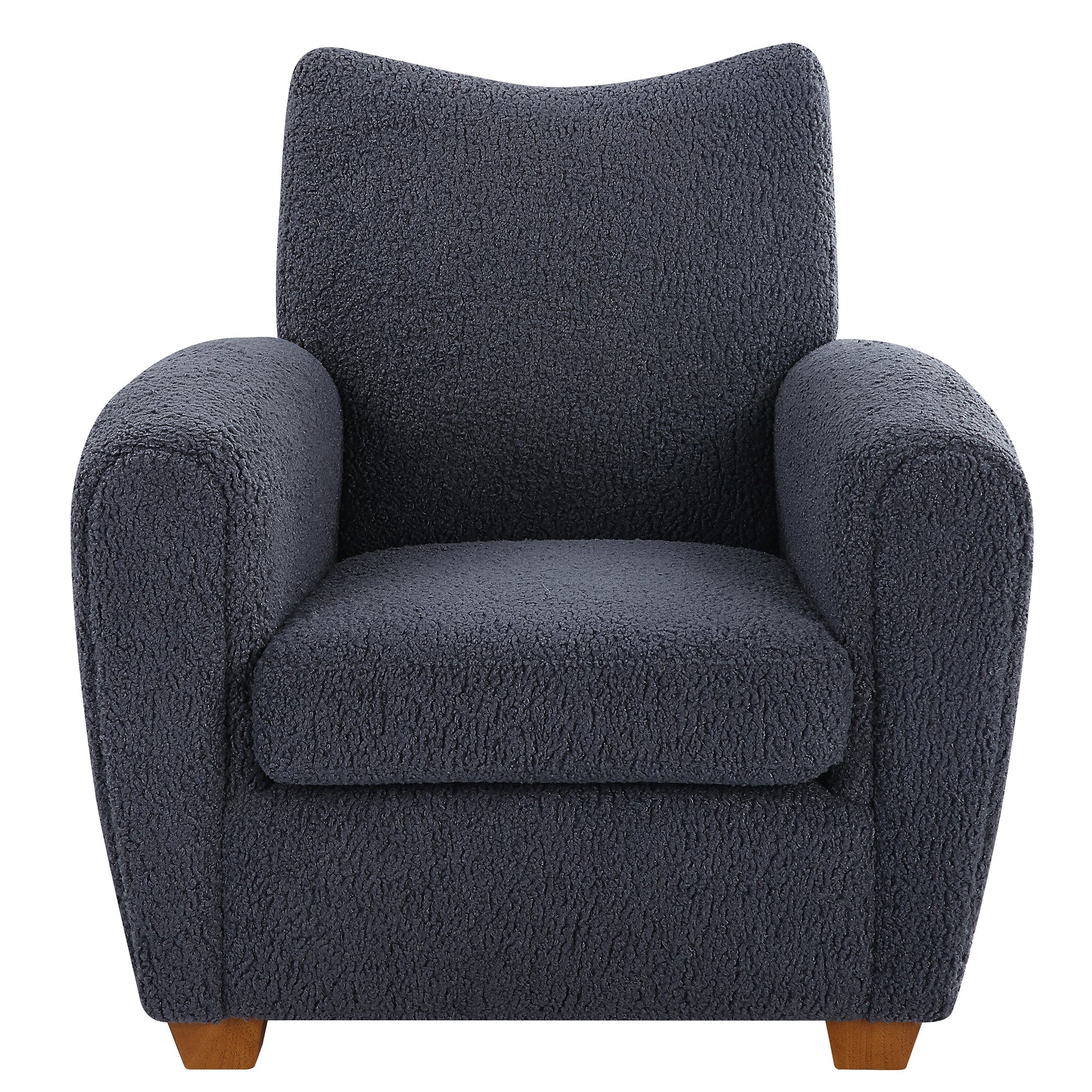 With Its Curved Track Arms And Supportive Back, This Cozy Accent Chair Is The Perfect Balance Of Comfort And Style. Fully Upholstered In A Slate Gray Faux Shearling And Accented By Walnut Stained Wooden Feet. Seat Height Is 18". Overall Depth : 33.5 in Overall Width : 31 in Overall Height : 35.5 in