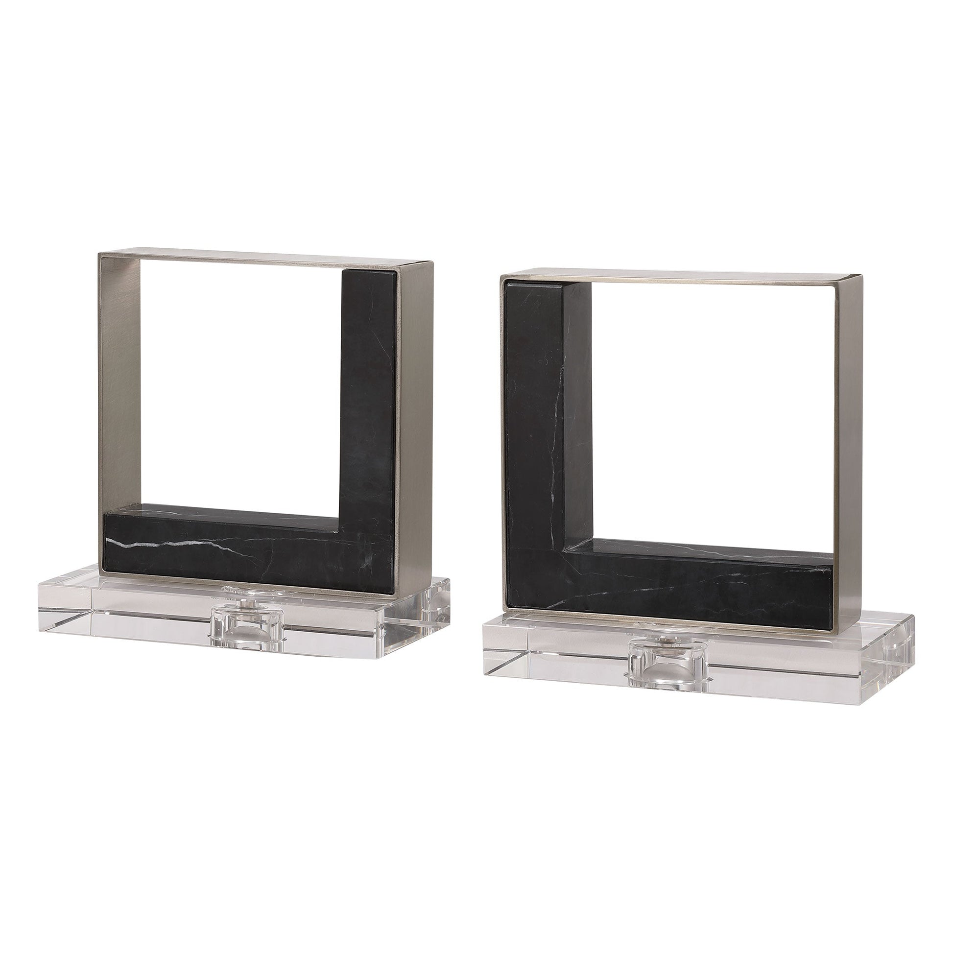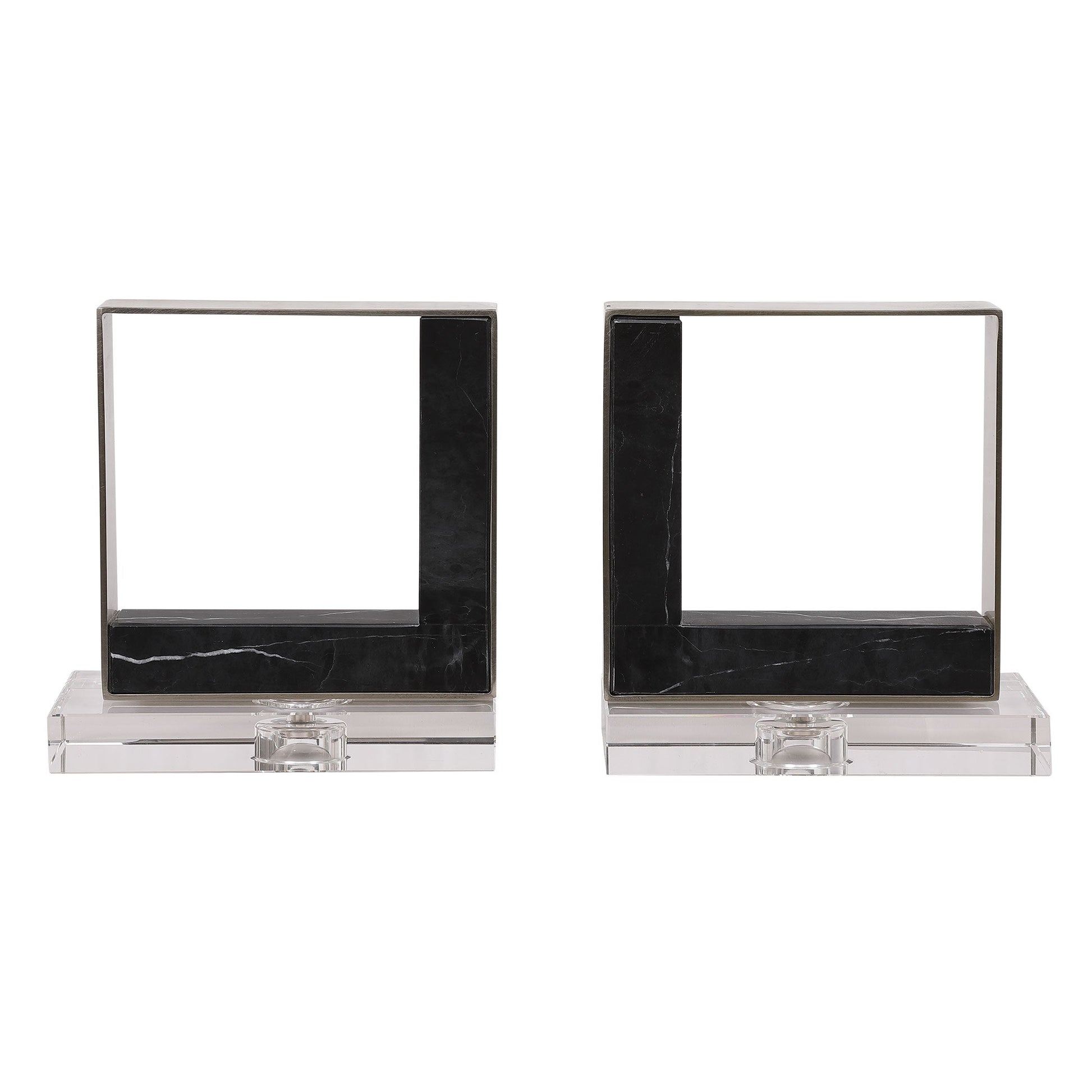 Modern And Sophisticated, These Bookends Feature Black Marble Accents With White Veining, Accented By Brushed Nickel Finished Steel And Crystal Accents. Overall Depth : 4 in Overall Width : 7.5 in Overall Height : 8 in