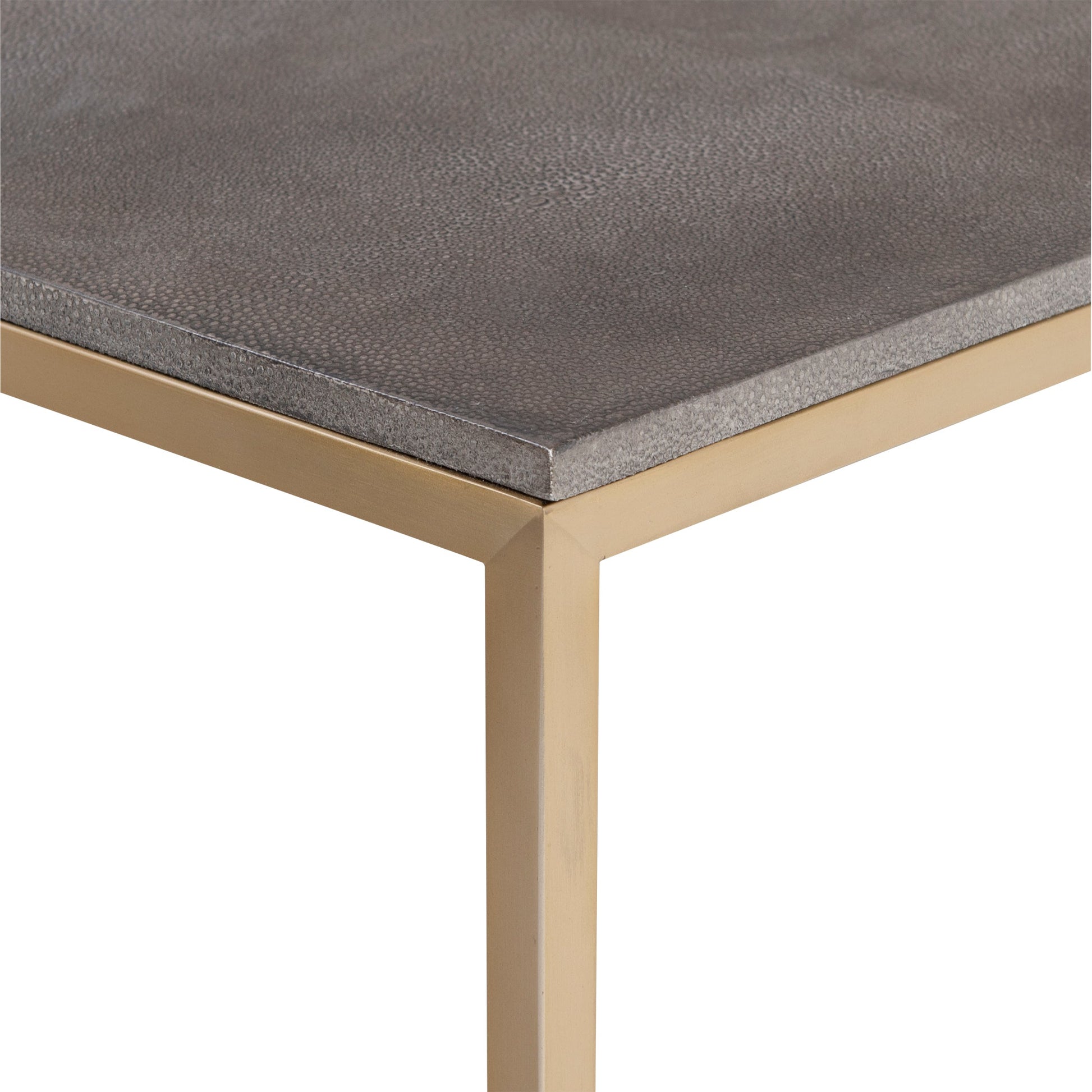 Inspired By Modern Styling, This Coffee Table Features A Beveled Faux Shagreen Wrapped Top In Charcoal Gray Paired With A Sleek Stainless Steel Base Finished In Brushed Brass. Overall Depth : 38 in Overall Width : 38 in Overall Height : 16 in