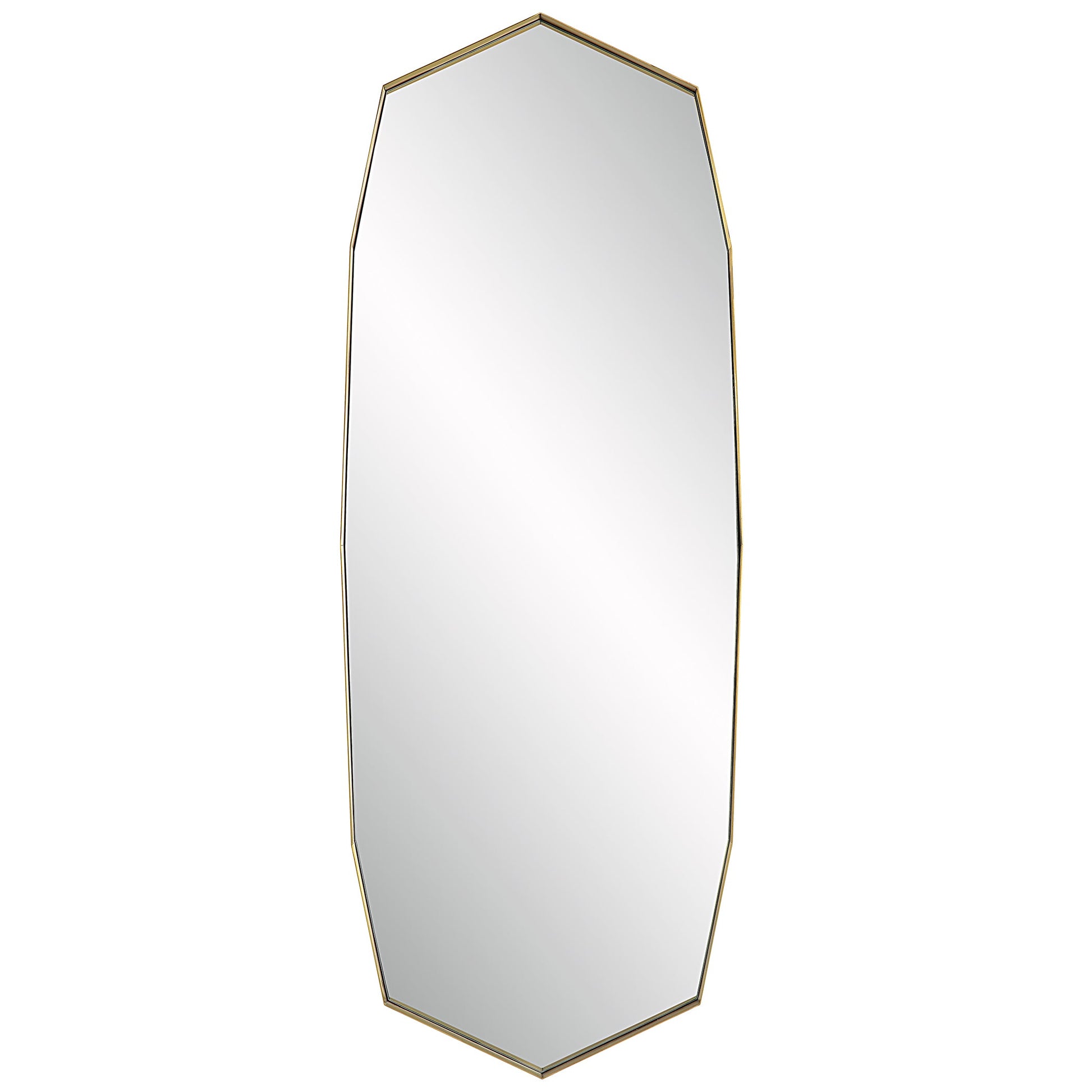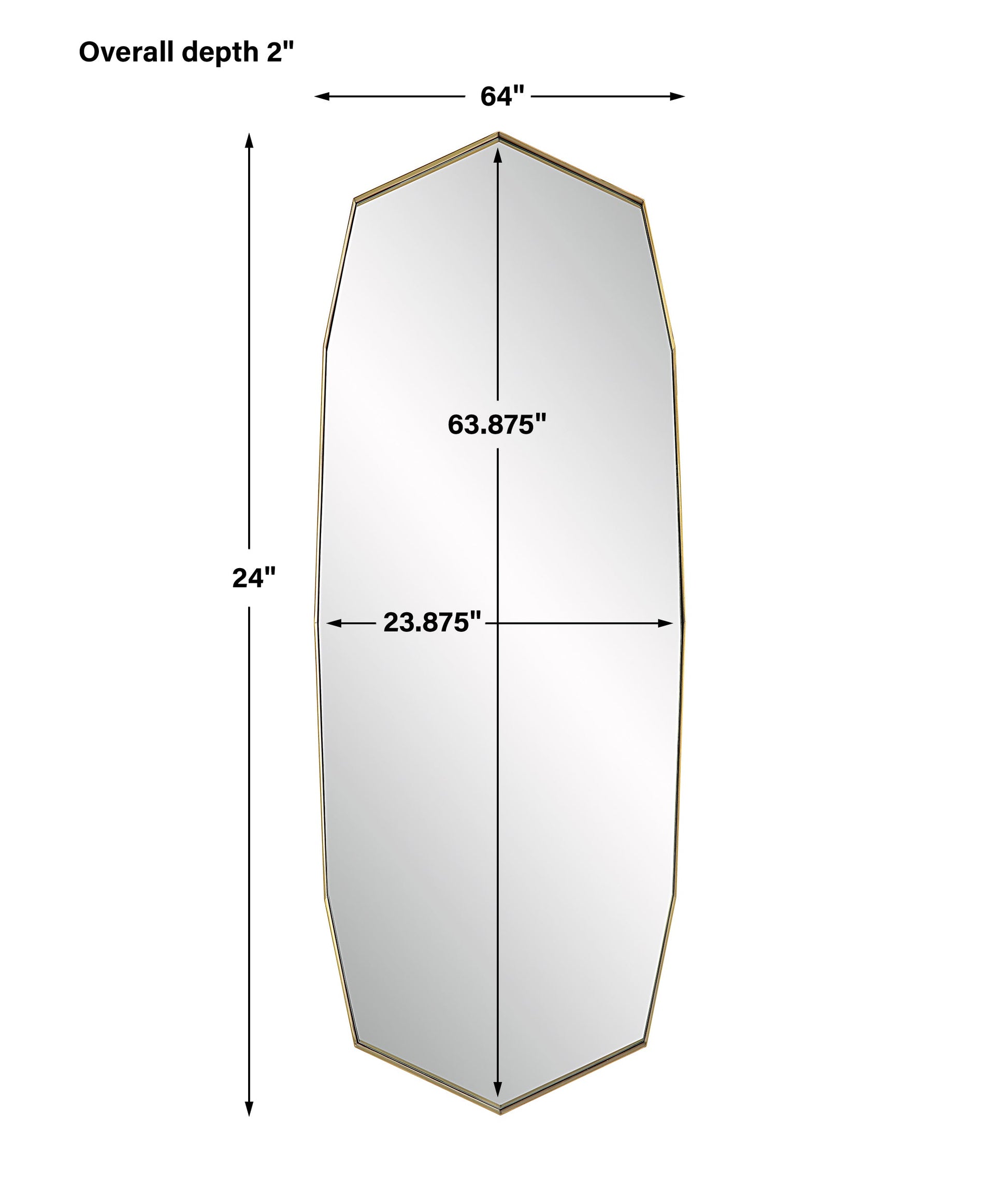 Displaying A Contemporary Feel, This Oversized Mirror Features A Deep, Angular Metal Band Frame Finished In Plated Antique Brass. May Be Hung Horizontal Or Vertical. Overall Depth : 2 in Overall Width : 24 in Overall Height : 64 in