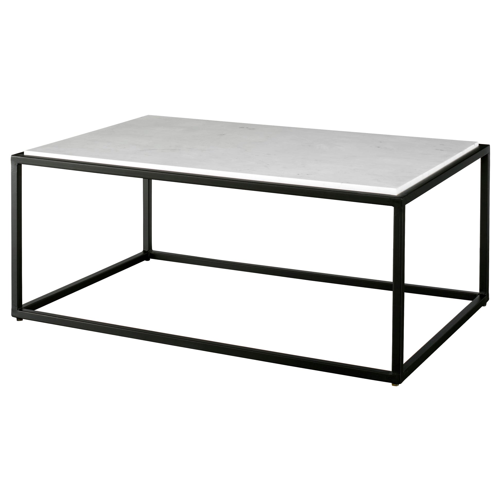 Displaying A Classic Modern Look, This Coffee Table Features A Satin Black Iron Frame Accentuated By A Beautiful Inset White Marble Slab Top. Because Of The Natural Characteristics Of Marble, Each Piece Will Have Unique Veining Patterns. Overall Depth : 26 in Overall Width : 40 in Overall Height : 16 in