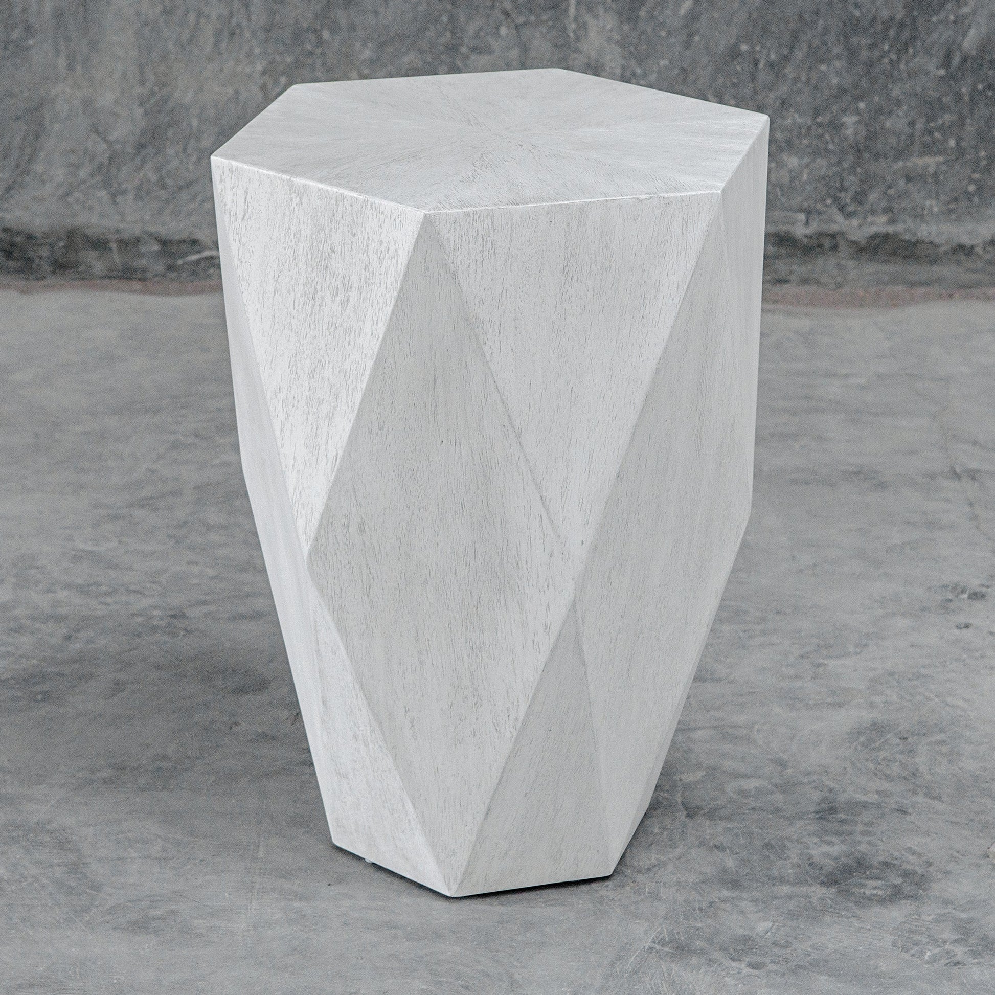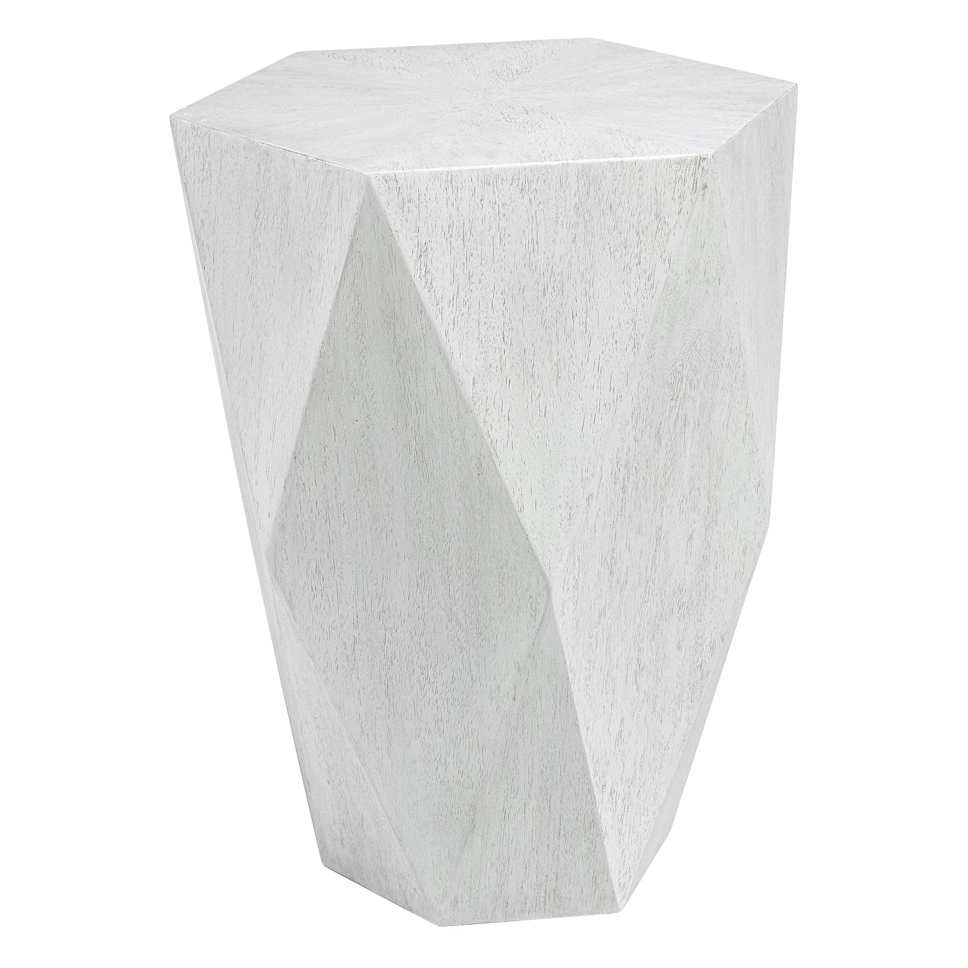 This Unique Geometric Side Table Features A Sunburst Top In Mango Veneer In A Fresh White Ceruse Finish. Overall Depth : 17 in Overall Width : 18.5 in Overall Height : 24 in