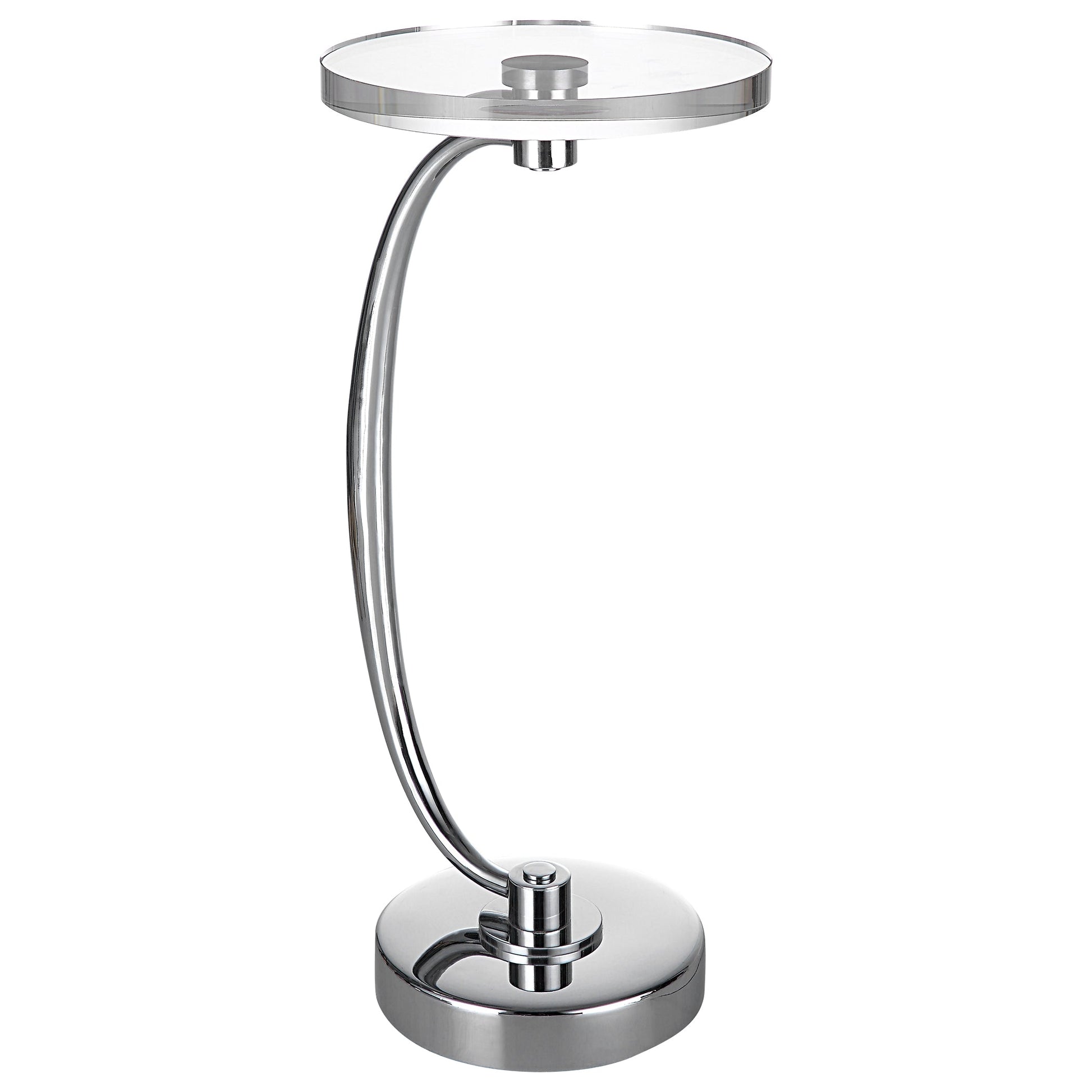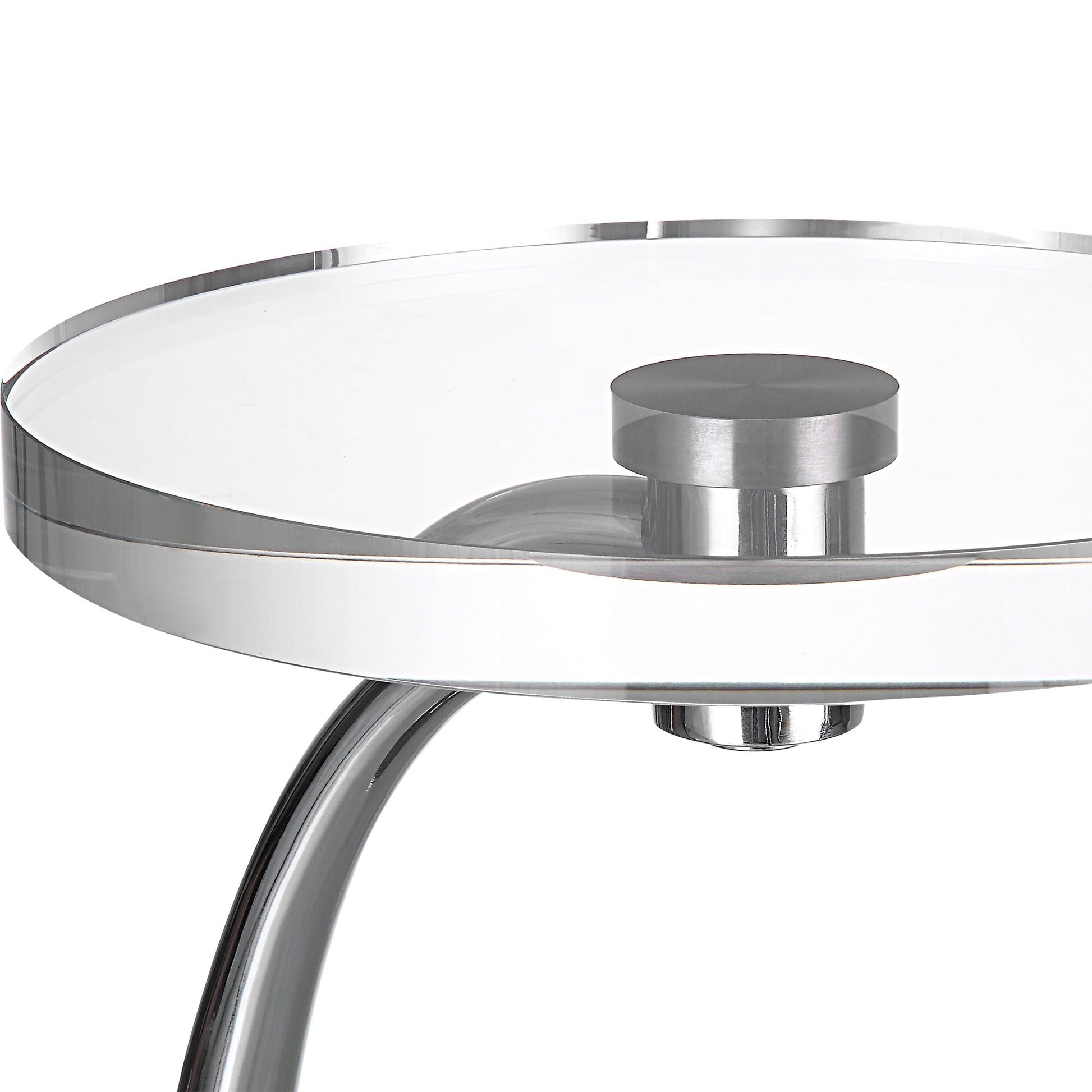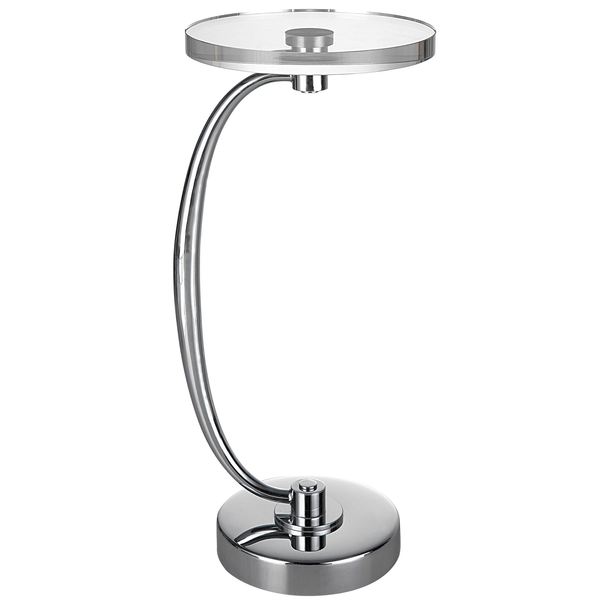 Minimal Yet Sophisticated, The Waveney Drink Table Displays A Sleek Curved Base In Polished Nickel Plated Iron With A Thick Crystal Top. Overall Depth : 11.5 in Overall Width : 11.5 in Overall Height : 24 in