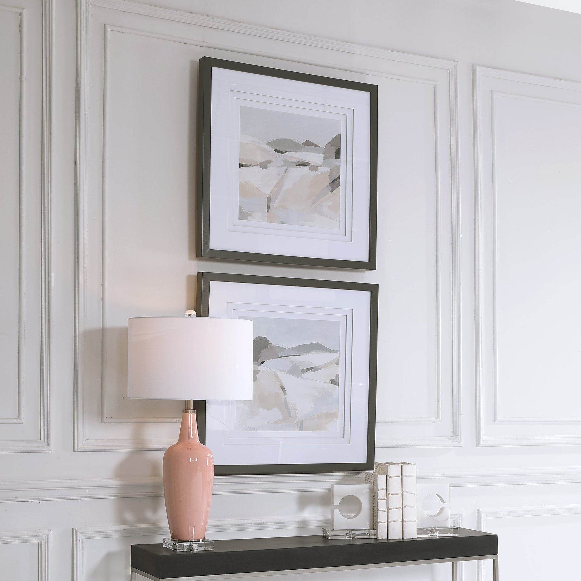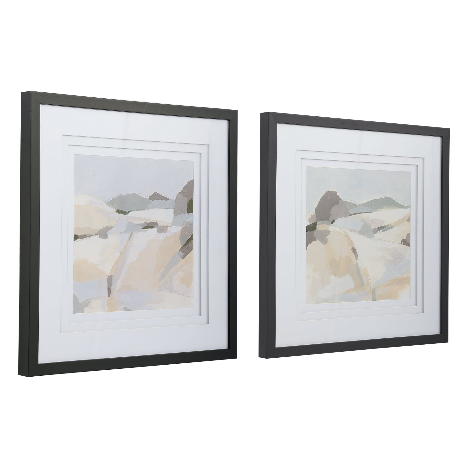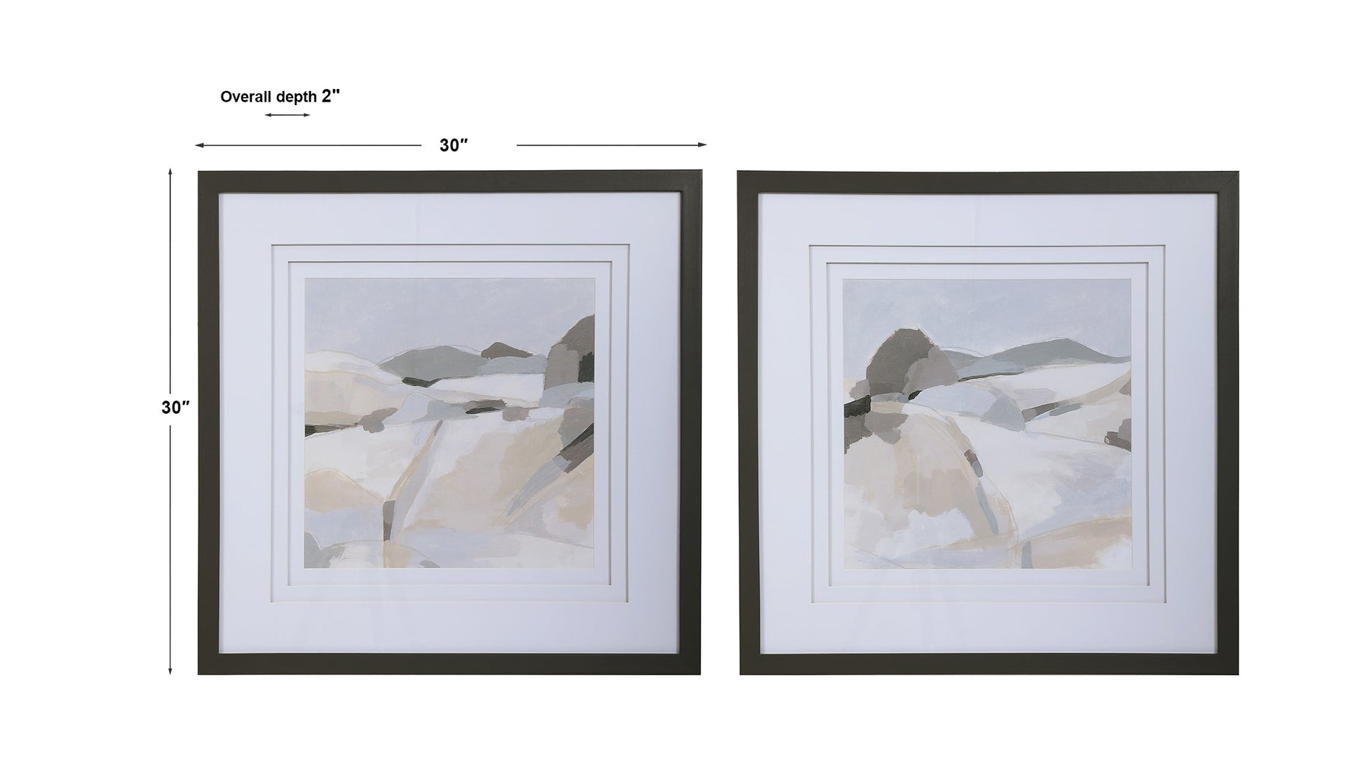 A Modern Interpretation Of The Rocky Mountains, These Framed Prints Showcase An Array Of Neutral Shades Including Taupe, Brown, Light Gray, And White. Each Print Is Accented By Triple White Matting With Spacers And A Sleek Slate Gray Frame Under Glass. Artwork By June Erica Vess. Overall Depth : 2 in Overall Width : 30 in Overall Height : 30 in