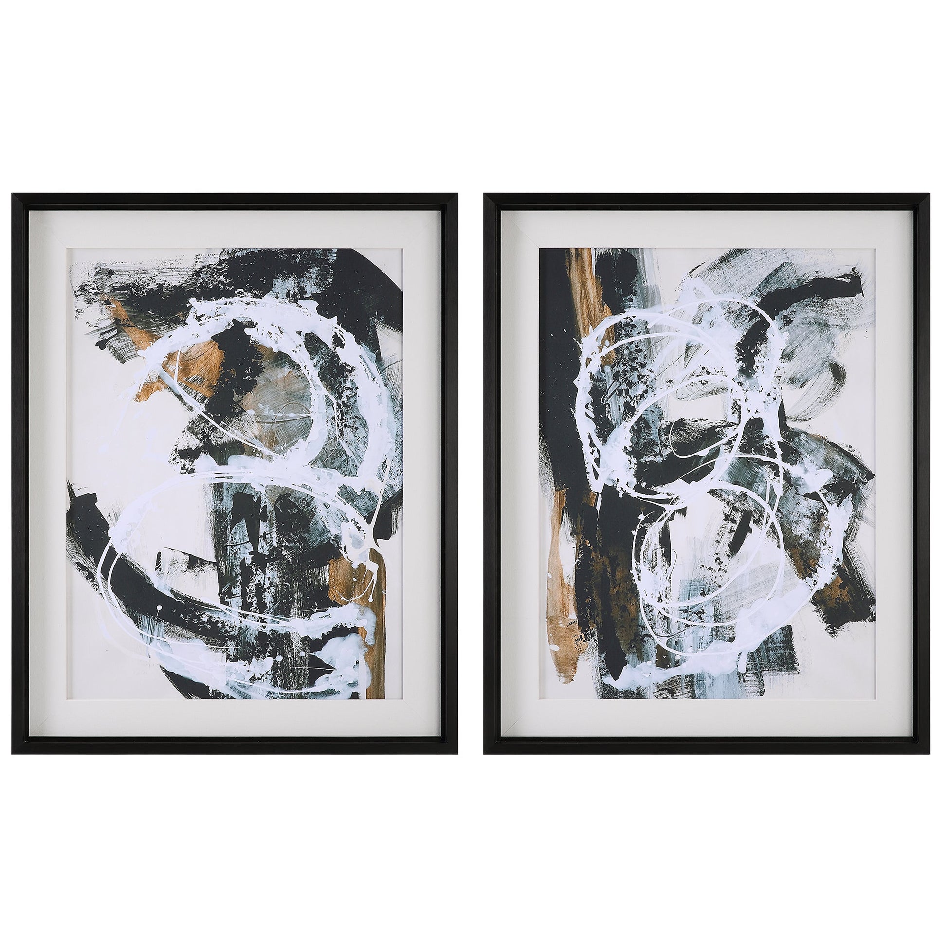 These Contemporary Compositions Feature A Unique Combination Of Warm Golden Ochre, Deep Charcoal, And White Tones. Accented By Satin Black Pine Wood Frames And A Natural Linen Wrapped Mat. May Be Hung Horizontal Or Vertical. Printed On Paper With Special Matte Finish. Artwork By Joyce Combs. Overall Depth : 2 in Overall Width : 30.75 in Overall Height : 38.75 in