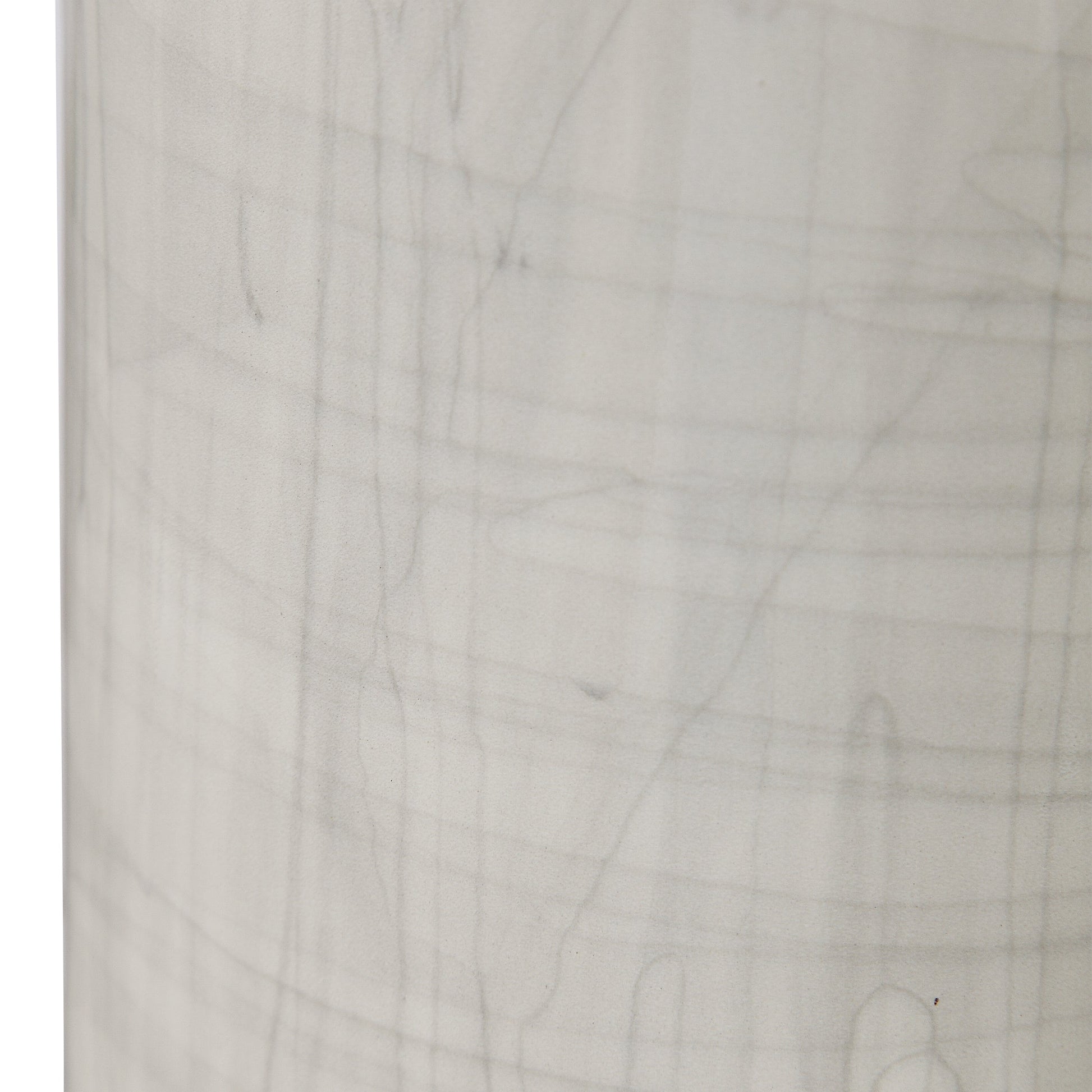 Modern In Design, This Ceramic Table Lamp Showcases A Neutral Beige Glaze With An Abstract Gray Drip Pattern, Paired With Elegant Crystal Details And Polished Nickel Plated Accents. The Hardback Drum Shade Is A White Linen Fabric. Overall Depth : 17 in Overall Width : 17 in Overall Height : 32 in