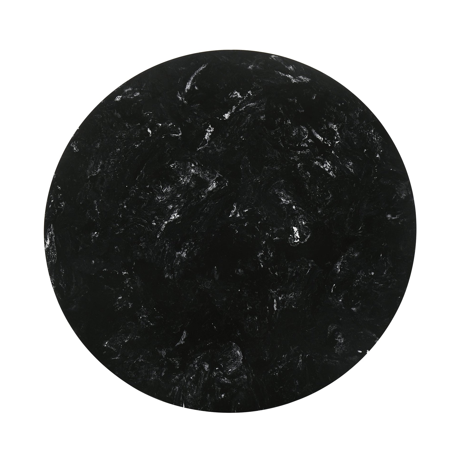 Venus 54" Round Mid-Century Modern Black Marble Dining Table with Black Wood Legs