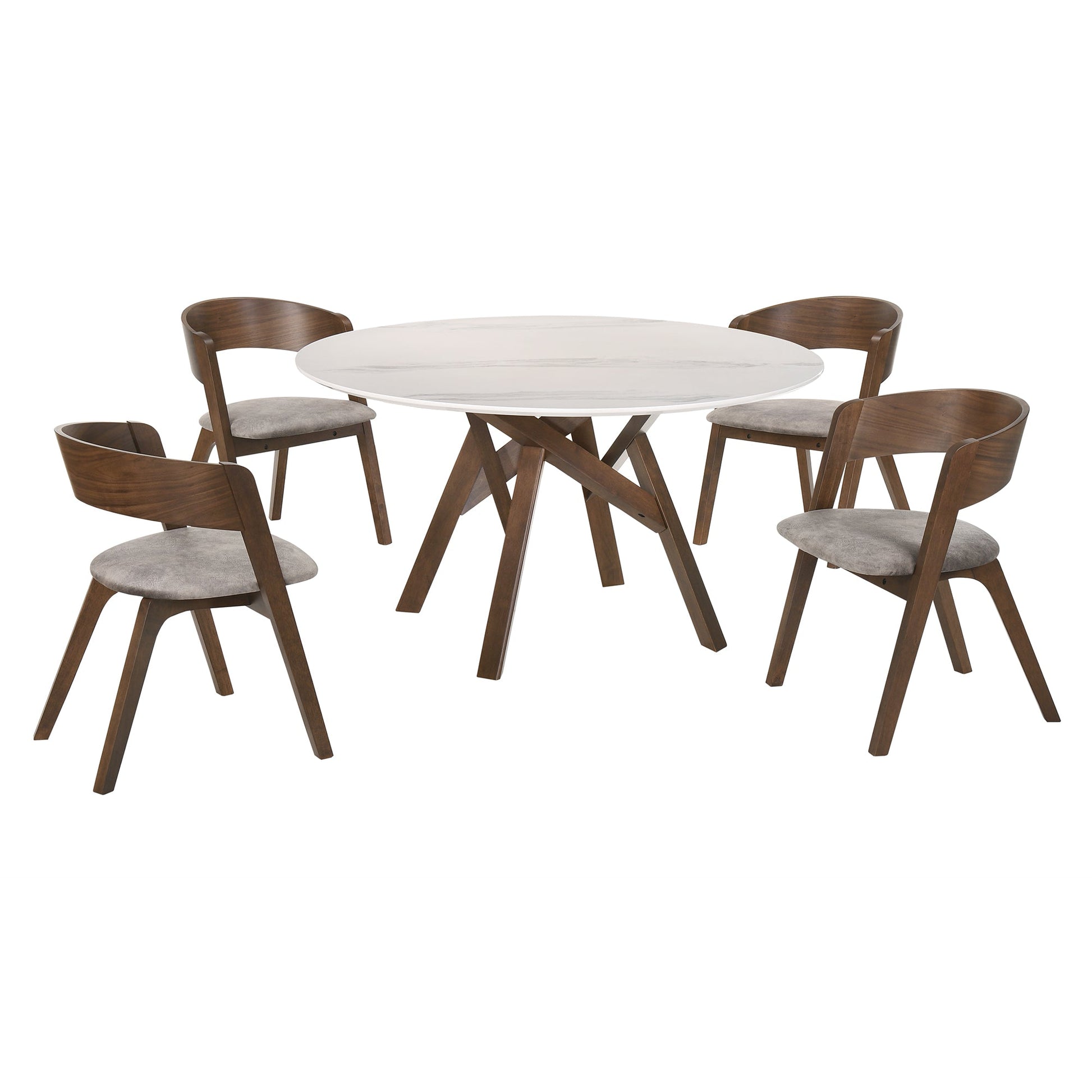 Venus and Jackie 5 Piece Walnut and Marble Round Dining Set