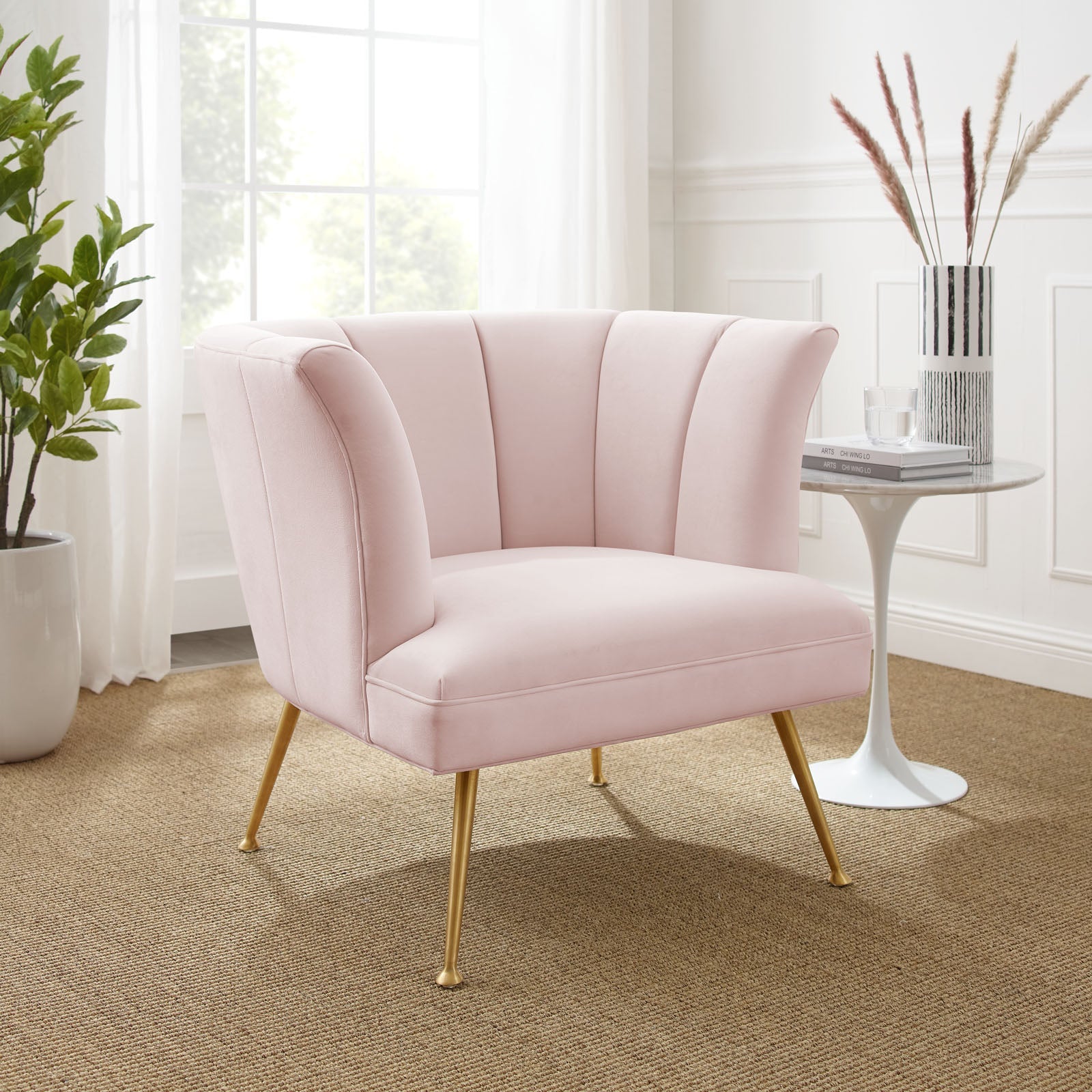 Veronica Channel Tufted Performance Velvet Armchair Pink EEI-5023-PNK