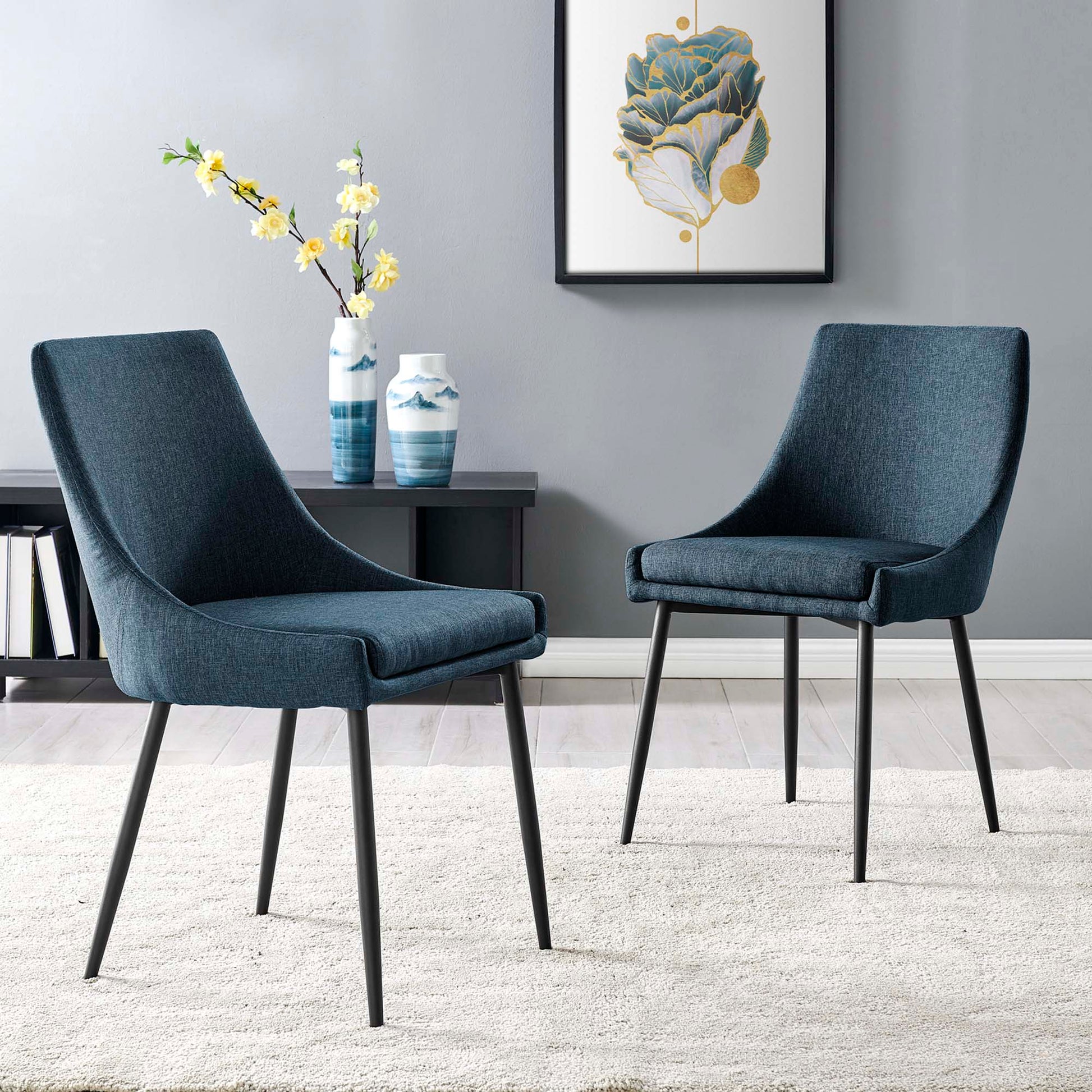Viscount Upholstered Fabric Dining Chairs Set of 2 by Modway EEI-3809-BLK-AZU