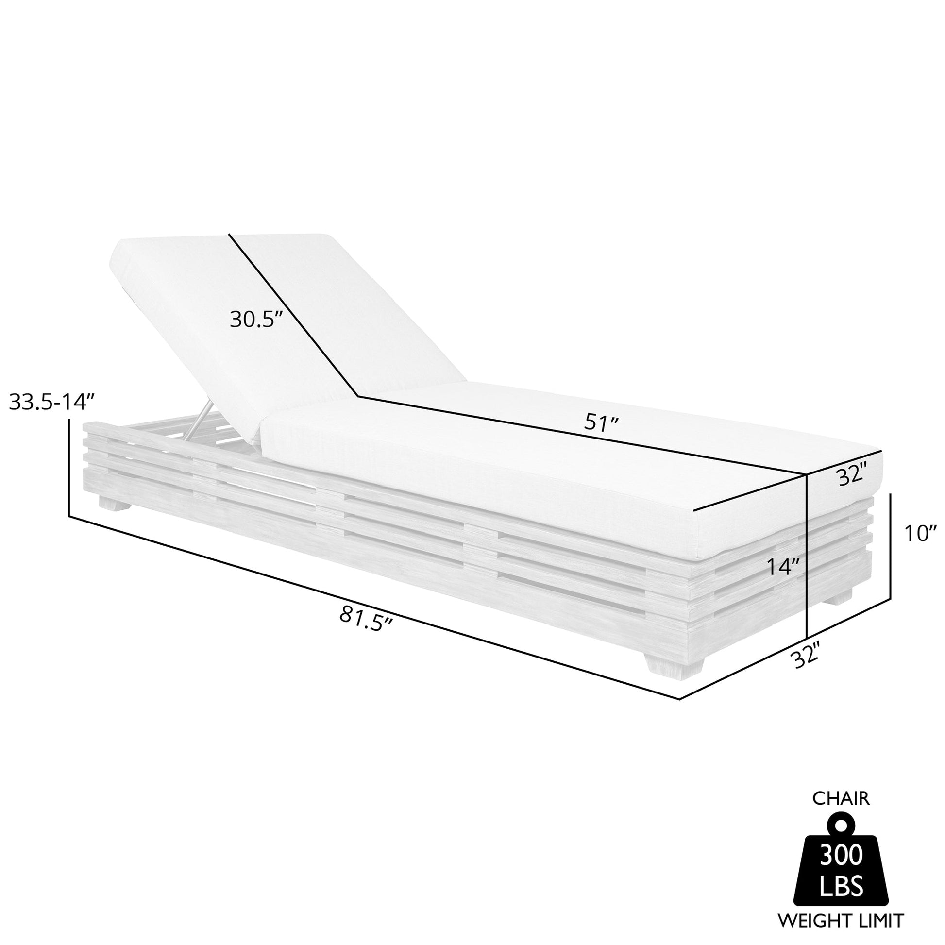 Introducing the Vivid Outdoor Patio Chaise Lounge Chair – a luxurious oasis of comfort and style designed to redefine your outdoor relaxation. This chaise lounge seamlessly marries the enduring beauty of Eucalyptus wood with the practicality of water-resistant and UV-resistant features, creating a refined piece of outdoor furniture that transforms your patio into a haven of tranquility. Crafted with meticulous attention to detail, the Vivid Chaise Lounge Chair showcases the timeless allure of Eucalyptus wood. This not only adds a touch of sophistication to your outdoor space but also ensures lasting durability. The chair's versatile design allows you to recline in style, whether by the pool, on the patio, or in your garden retreat. Designed for those who appreciate both form and function, the Vivid Chaise Lounge Chair boasts water-resistant and UV-resistant properties, offering peace of mind in the face of changing weather conditions. Whether basking in the sun or seeking shade, this lounge chair remains a steadfast companion for your outdoor moments. Immerse yourself in ultimate comfort with the plush Olefin cushions, providing a soft and inviting seat. With water-resistant capabilities and easily removable covers, maintaining the freshness and allure of your outdoor oasis has never been more effortless. Elevate your outdoor lounging experience with the Vivid Outdoor Patio Chaise Lounge Chair in Eucalyptus Wood. Its sleek and ergonomic design not only complements various outdoor settings but also sets the stage for moments of serenity and relaxation.