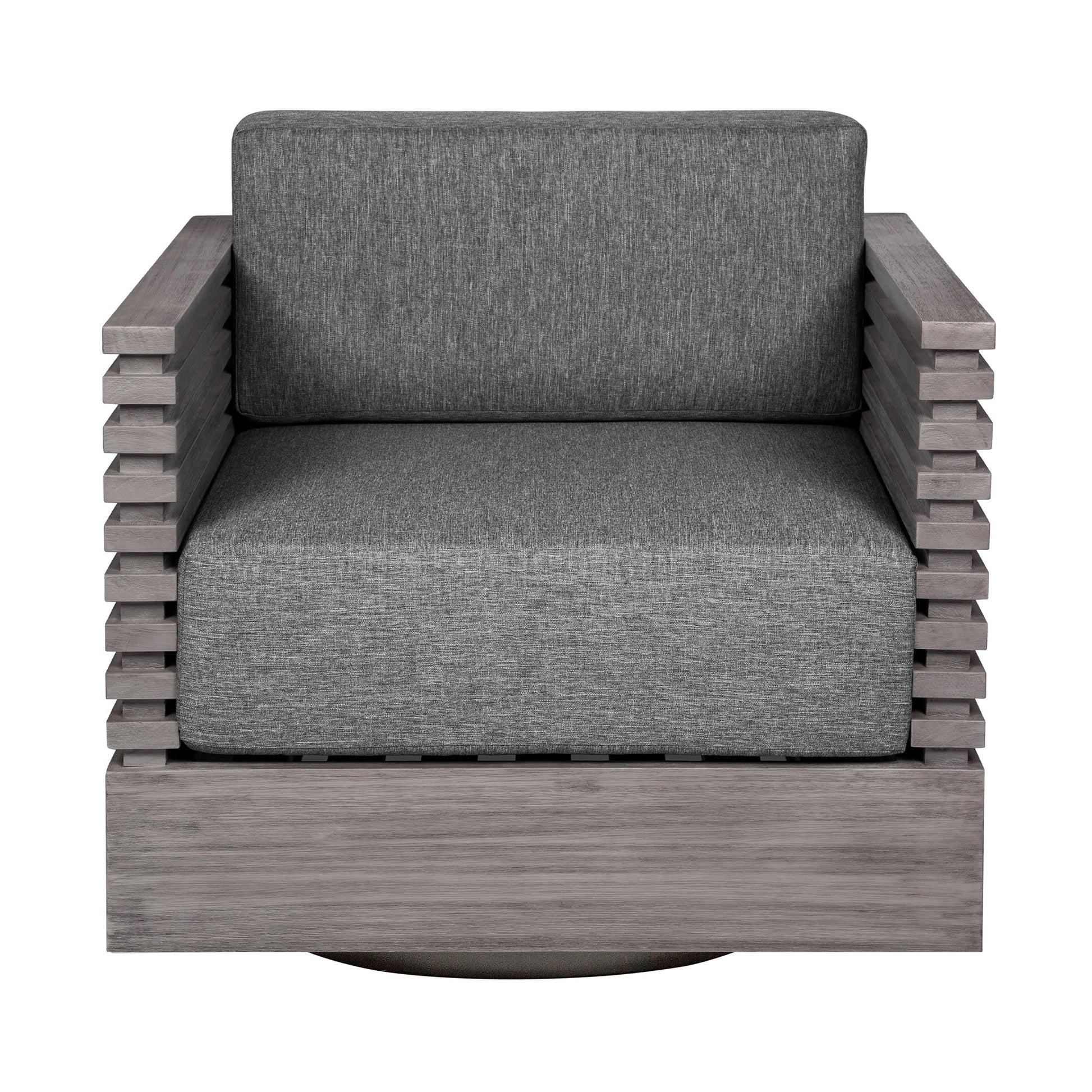 Vivid Swivel Outdoor Patio Chair in Gray Eucalyptus Wood with Gray Olefin Cushions