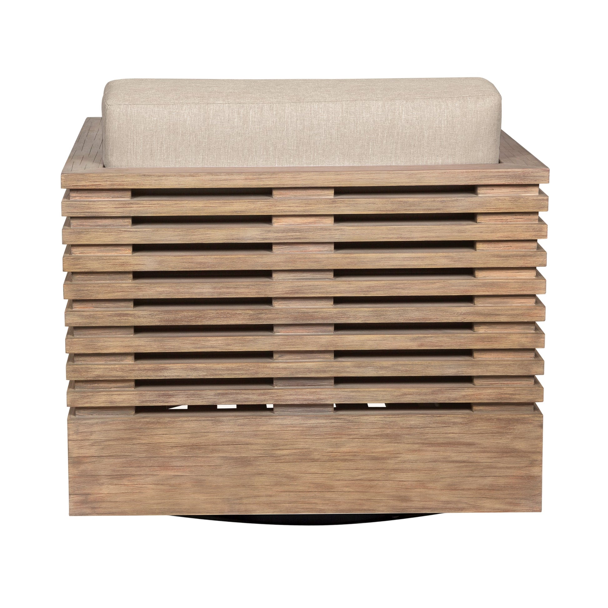 Vivid Swivel Outdoor Patio Chair in Light Eucalyptus Wood with Taupe Olefin Cushions